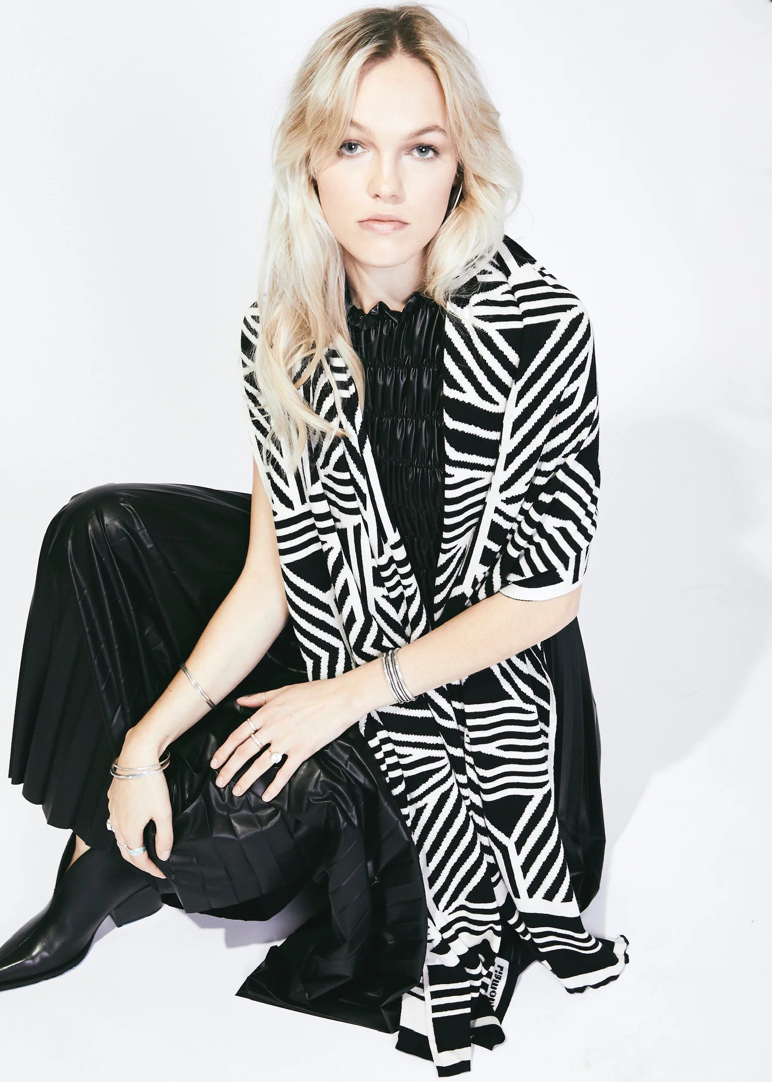 100% Italian Spun Egyptian Cotton Body Cocoon Wrap: Camelia Wrap Black + Cream