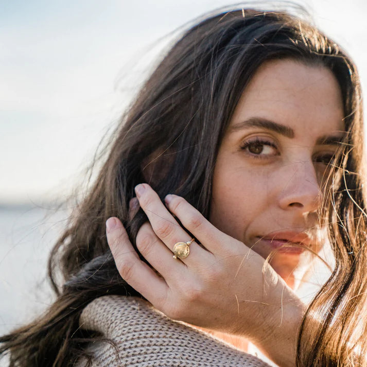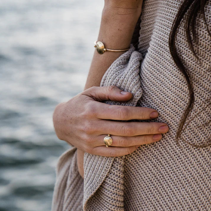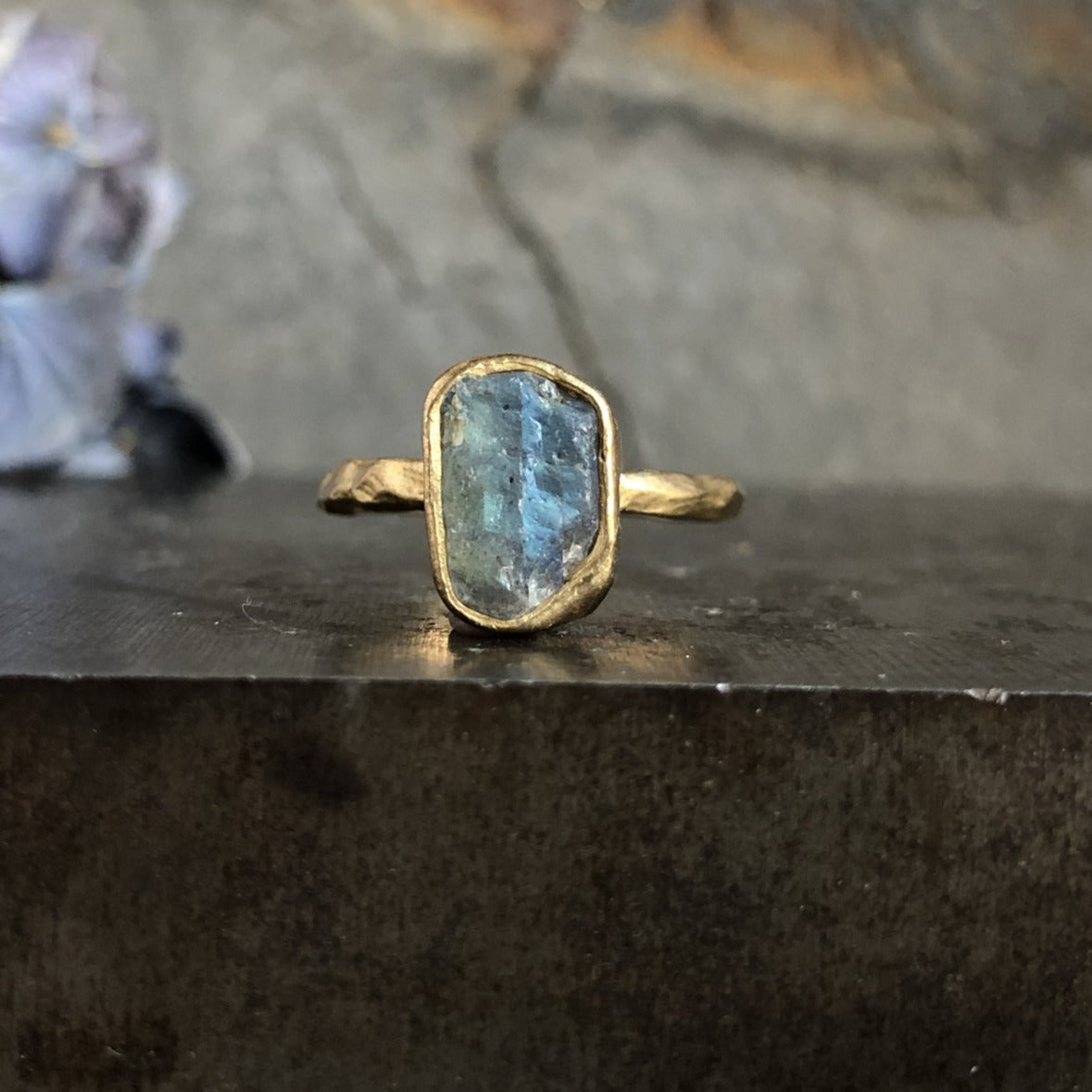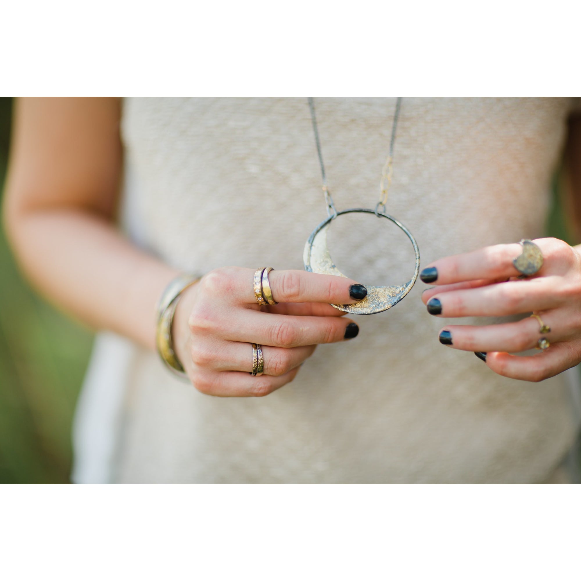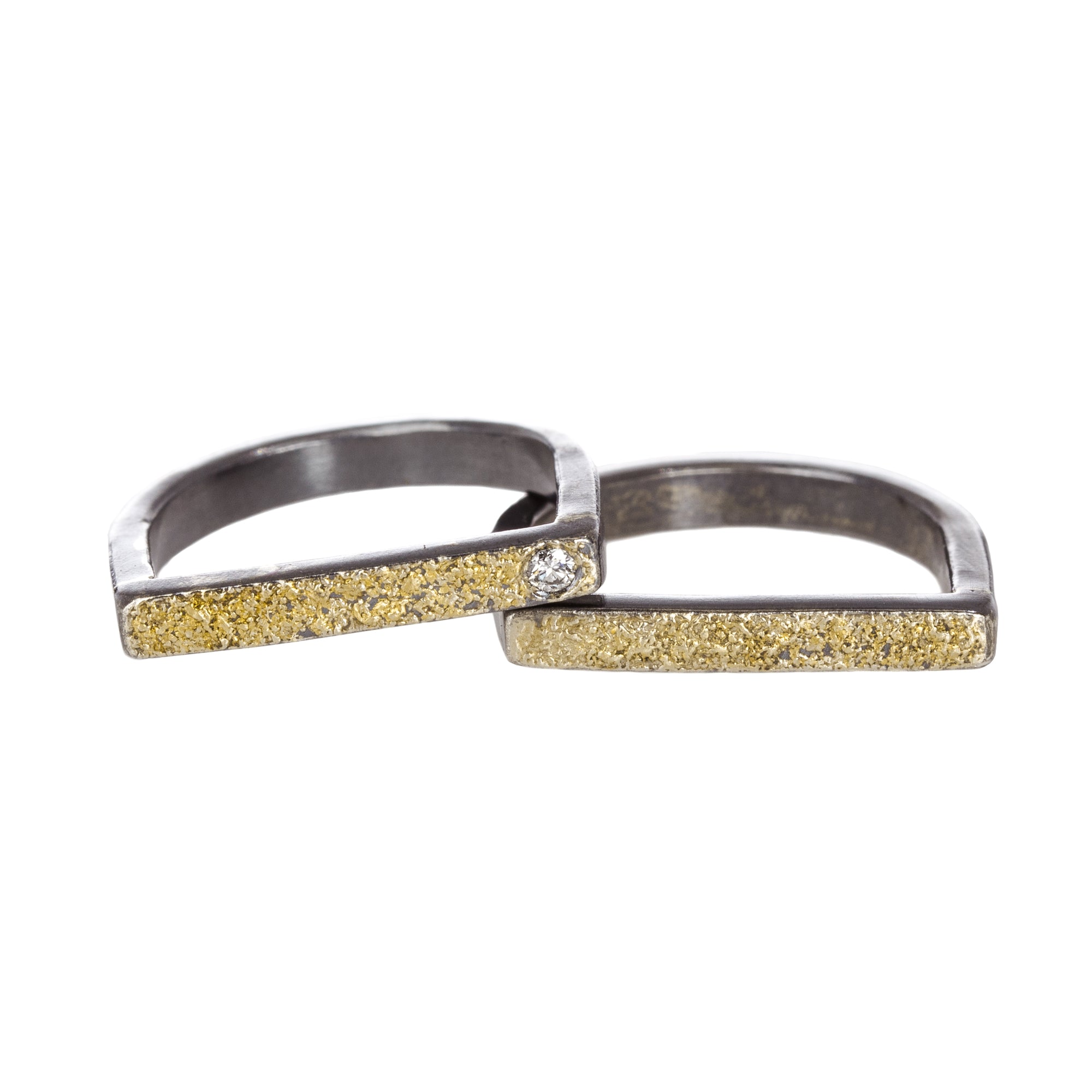 Dusted Slice Ring - 22k Gold, Oxidized Argentium Silver