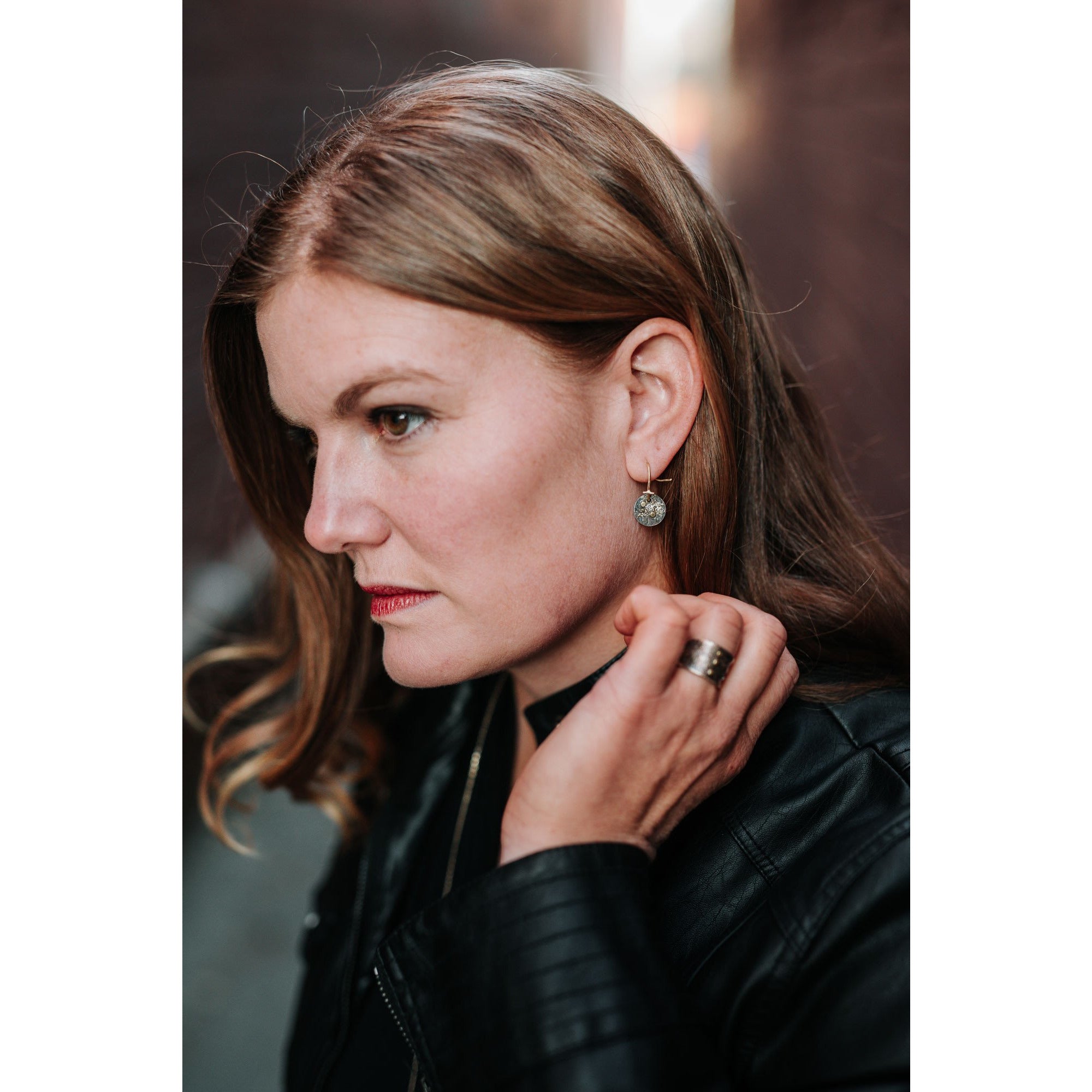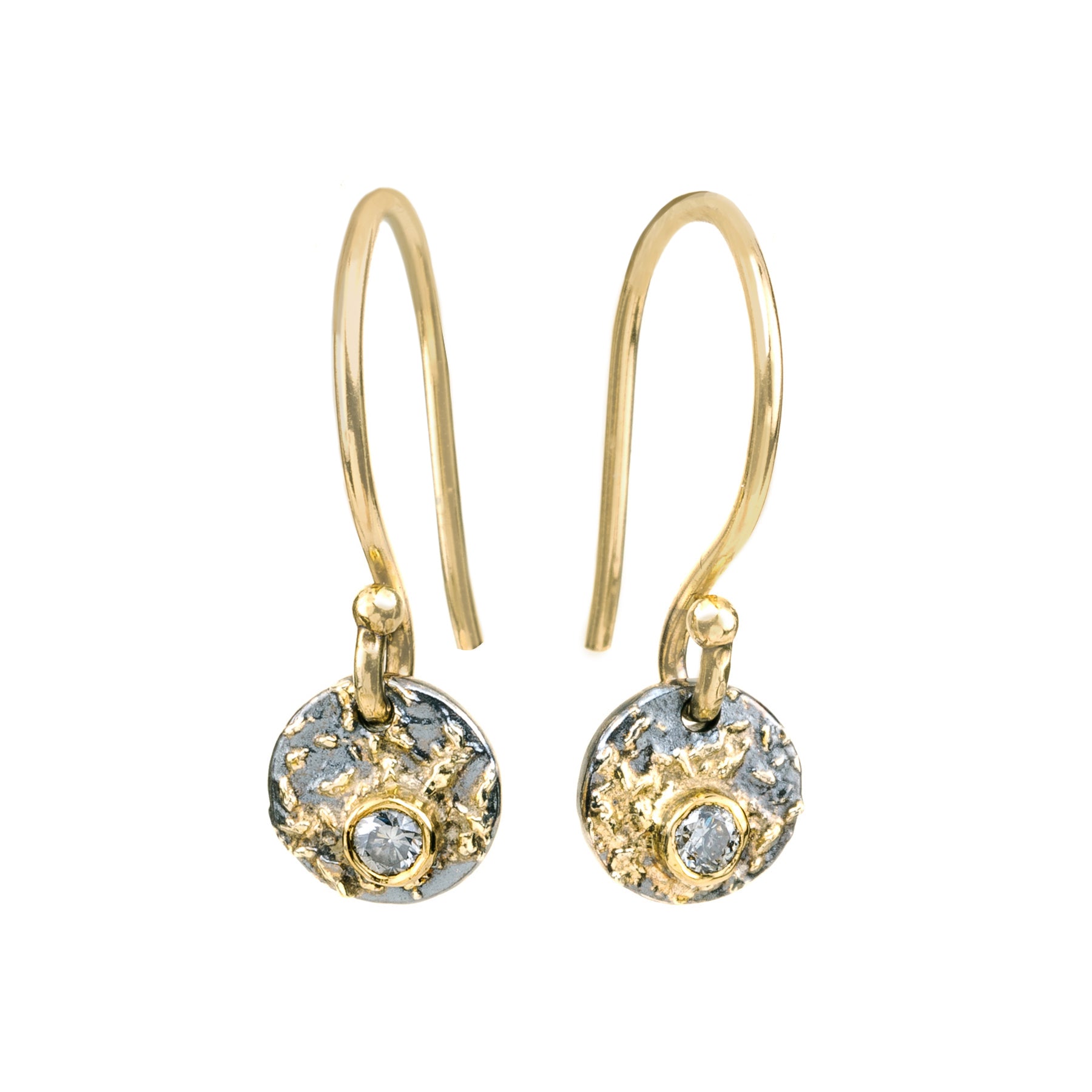 Mini Disc Earrings - 18k Gold Fused with Oxidized Silver