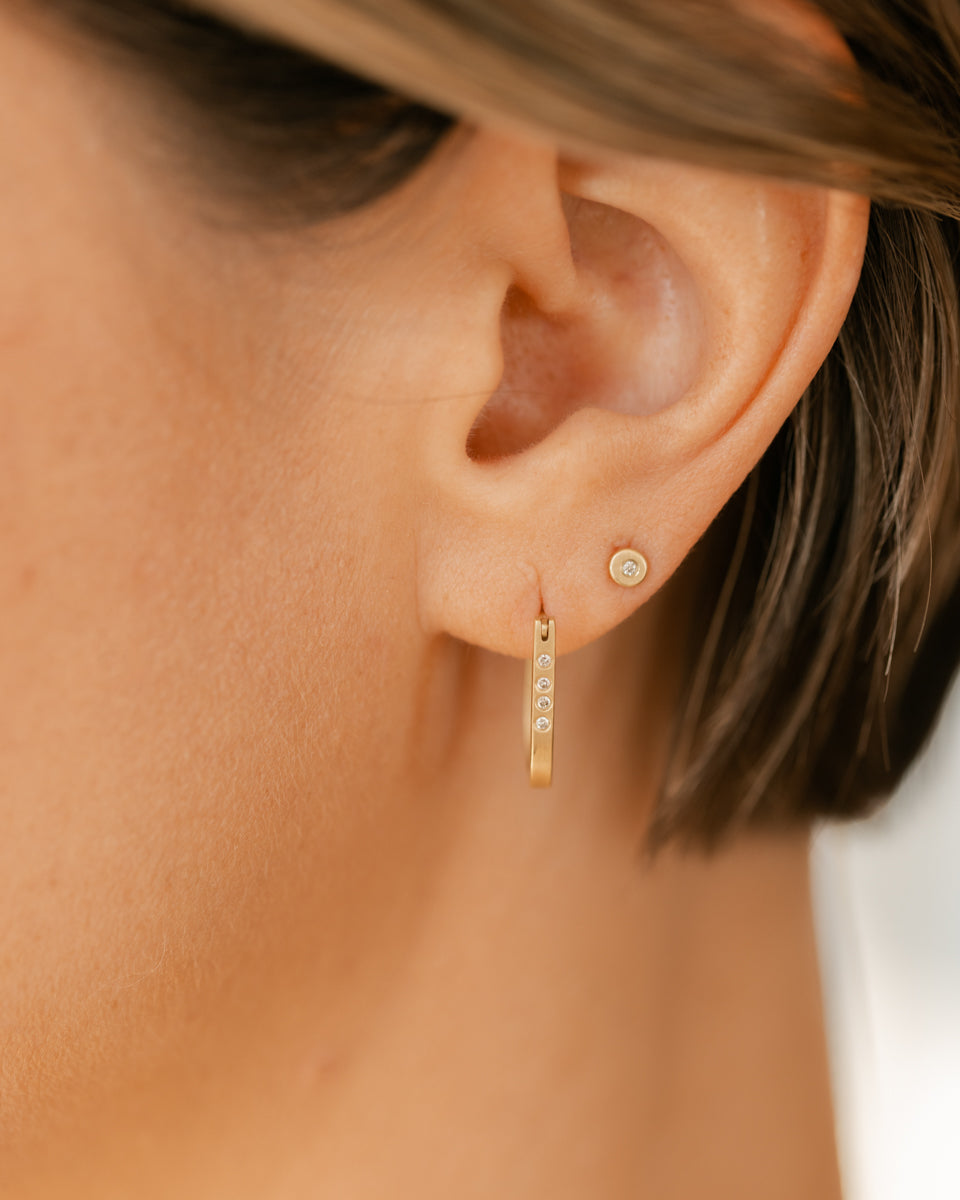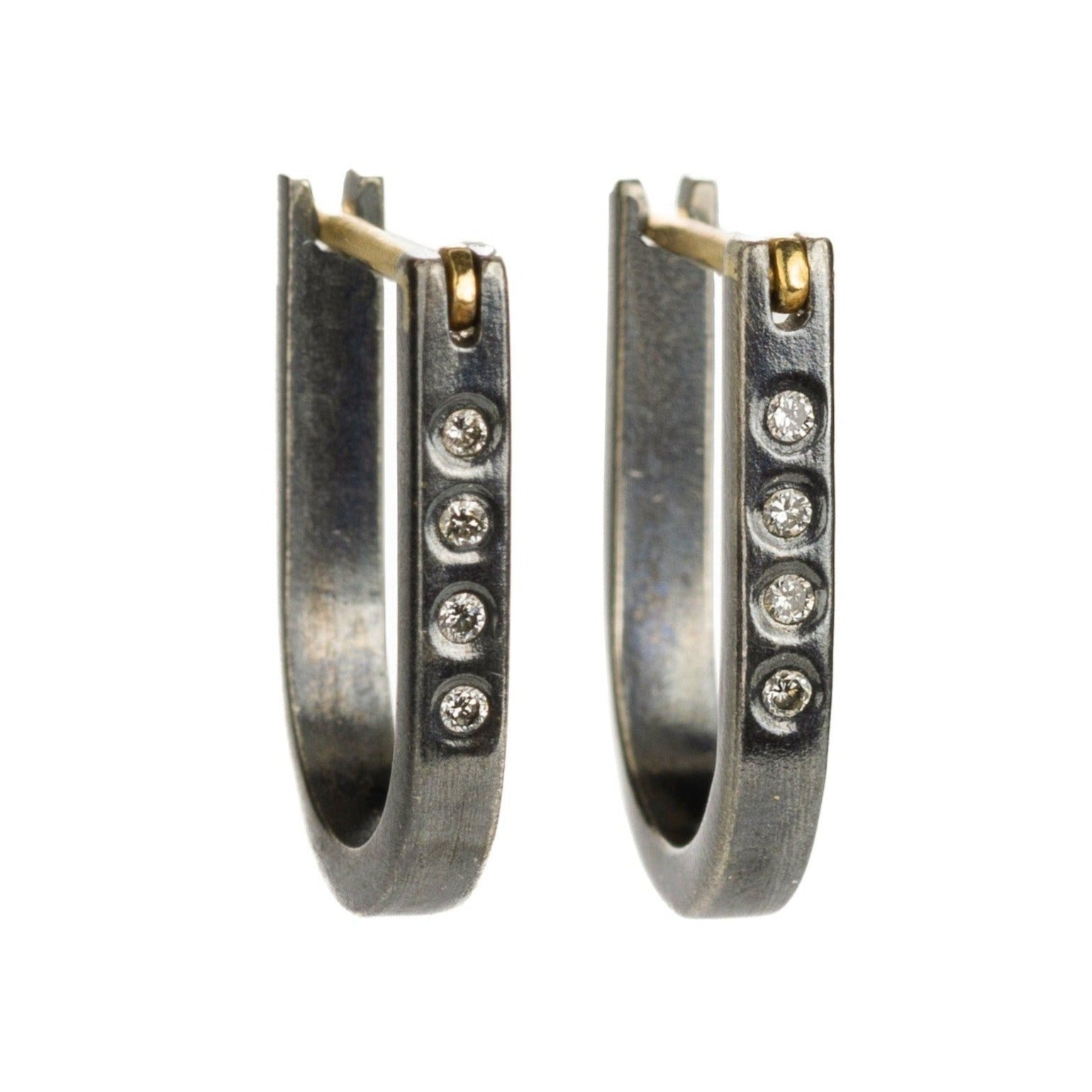 Traveler Huggie Hoops - 18k Gold, Oxidized Silver + Reclaimed Diamonds