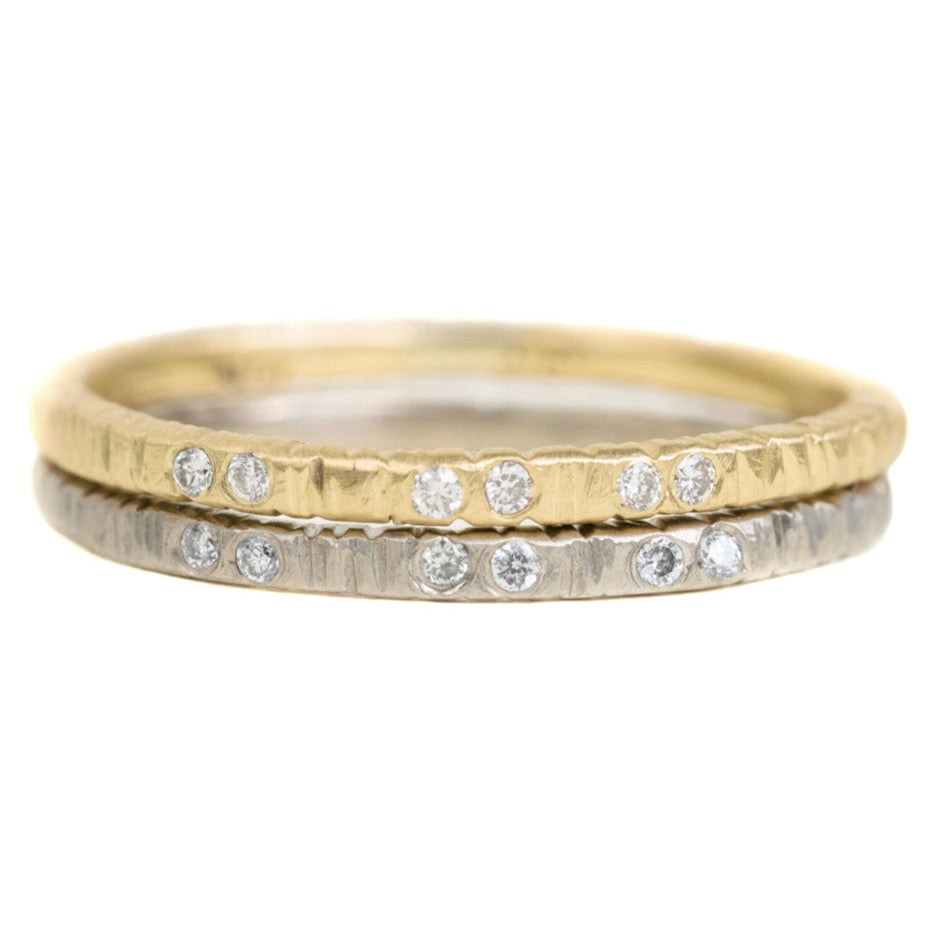 Aspen Wedding Stackers with Diamonds - 18ky Gold, 14kpw Gold + VS Diamonds
