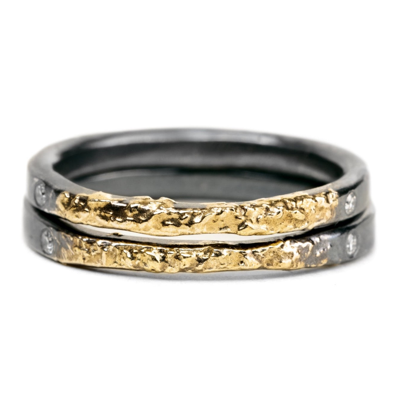 Radiance Fused Stackers - 18k Gold + Oxidized Argentium Silver