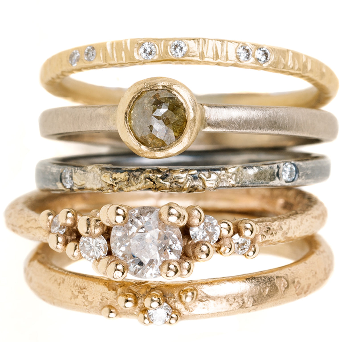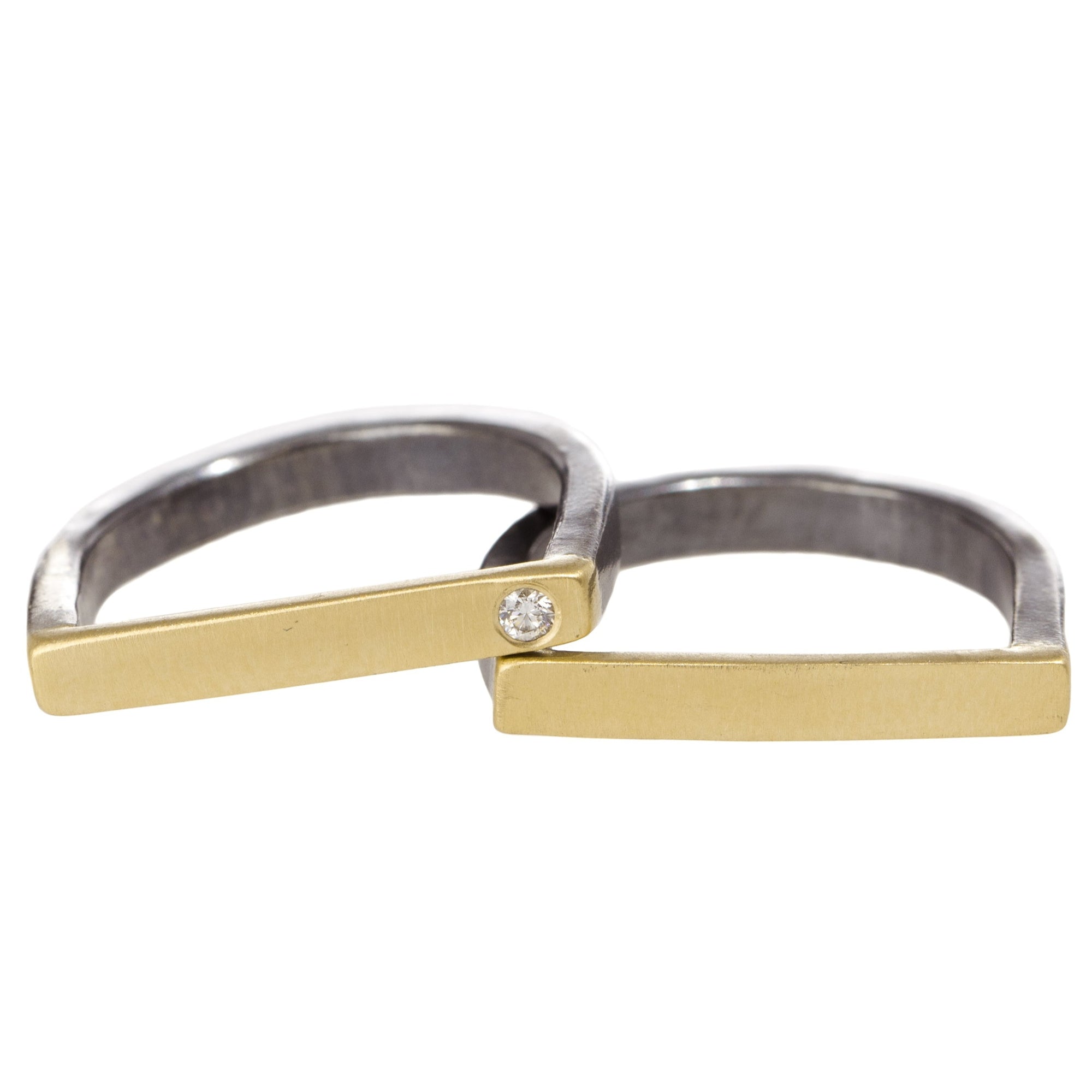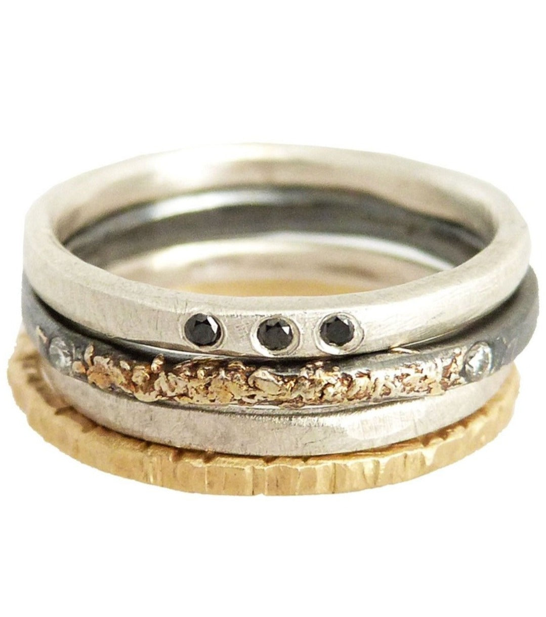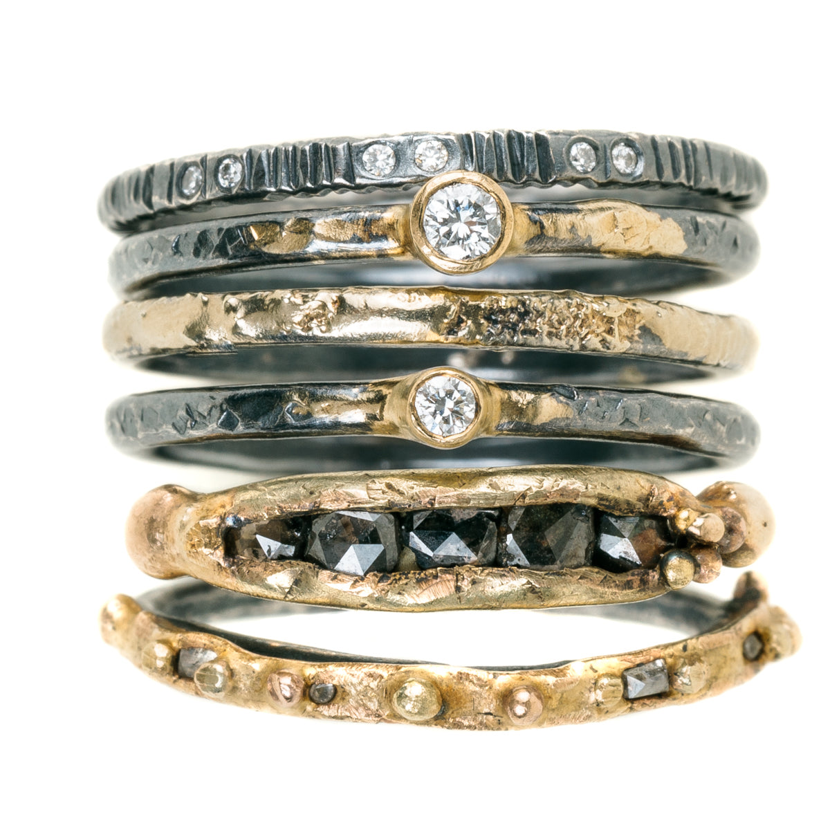 The Jane Stack Rings - 18k Gold, Oxidized Silver + Diamonds