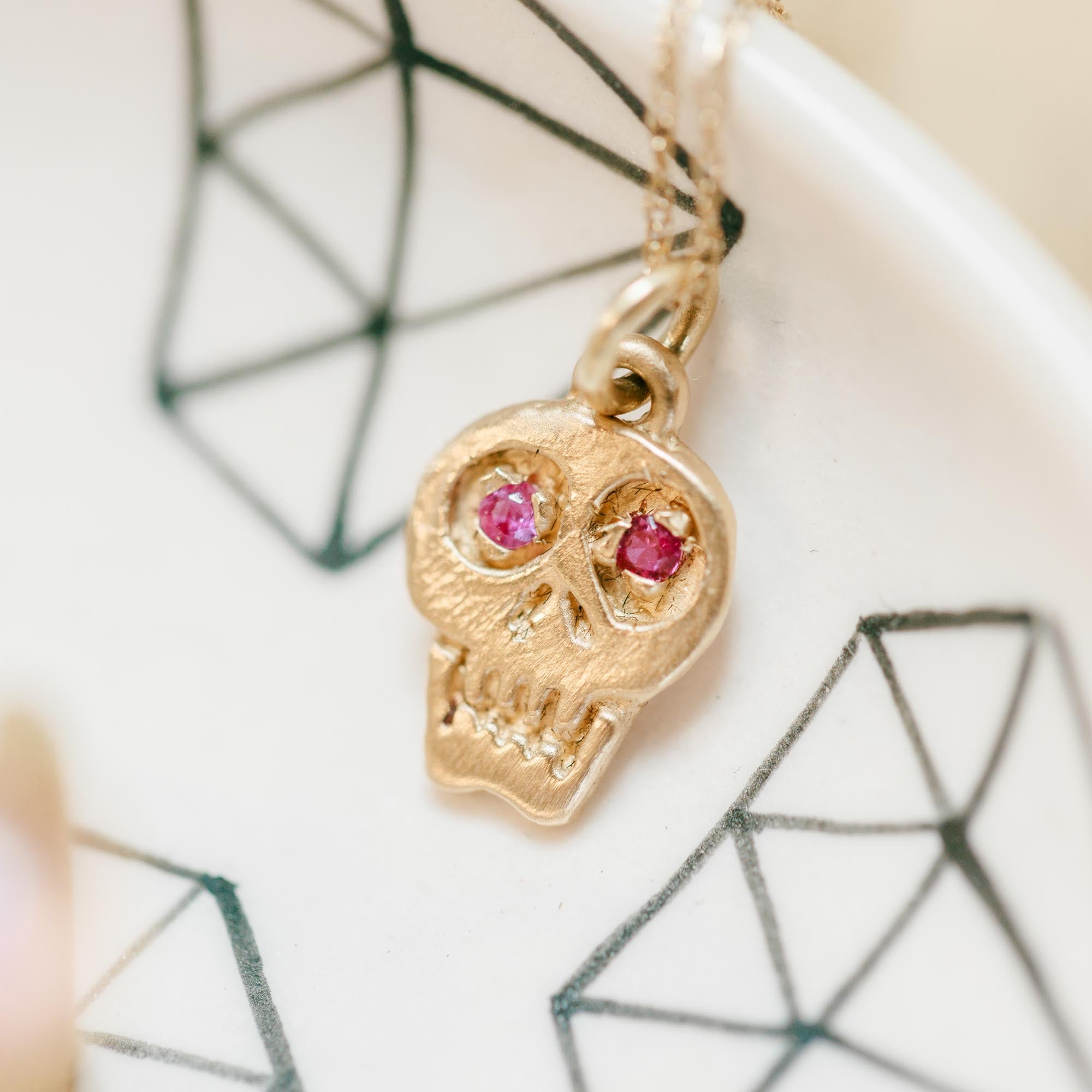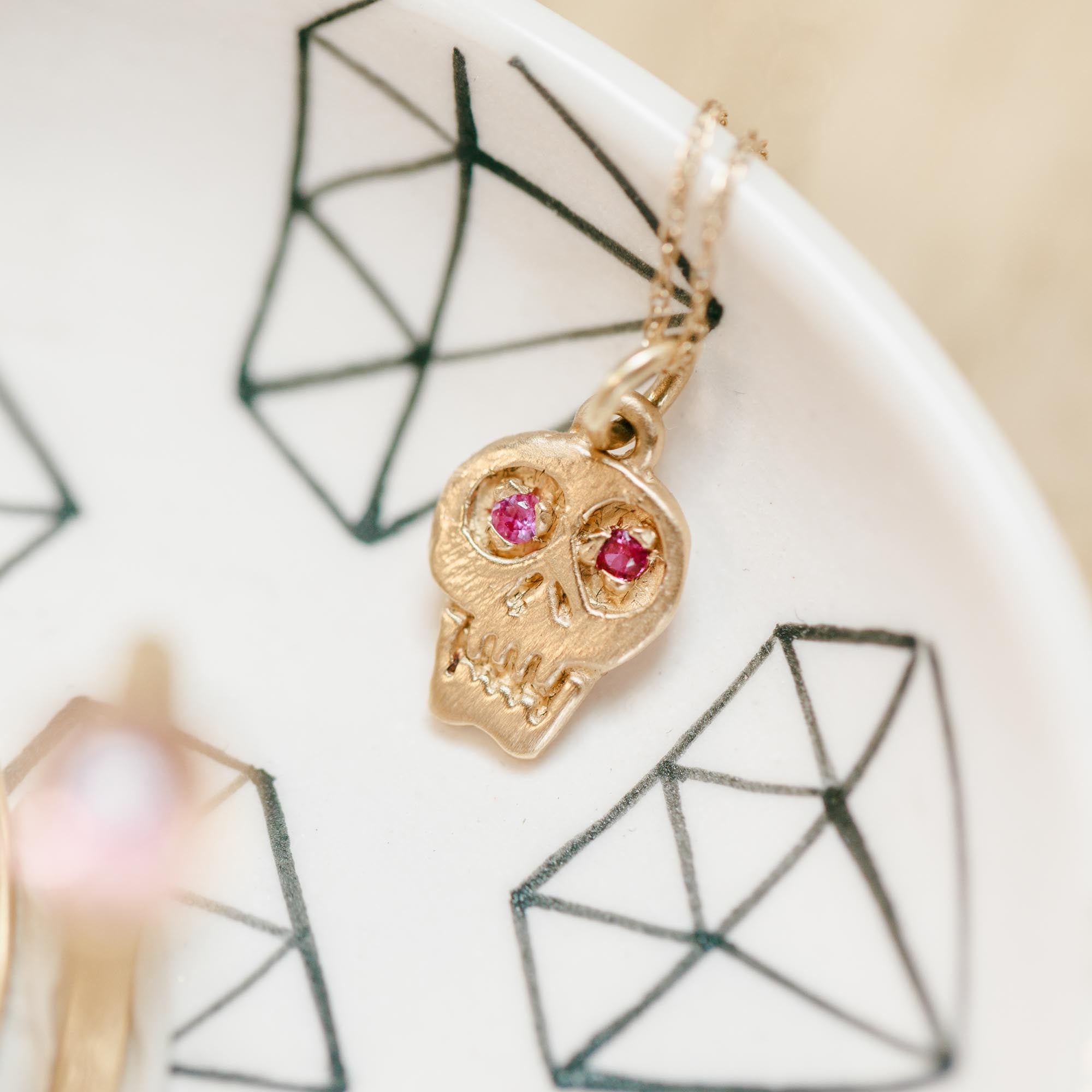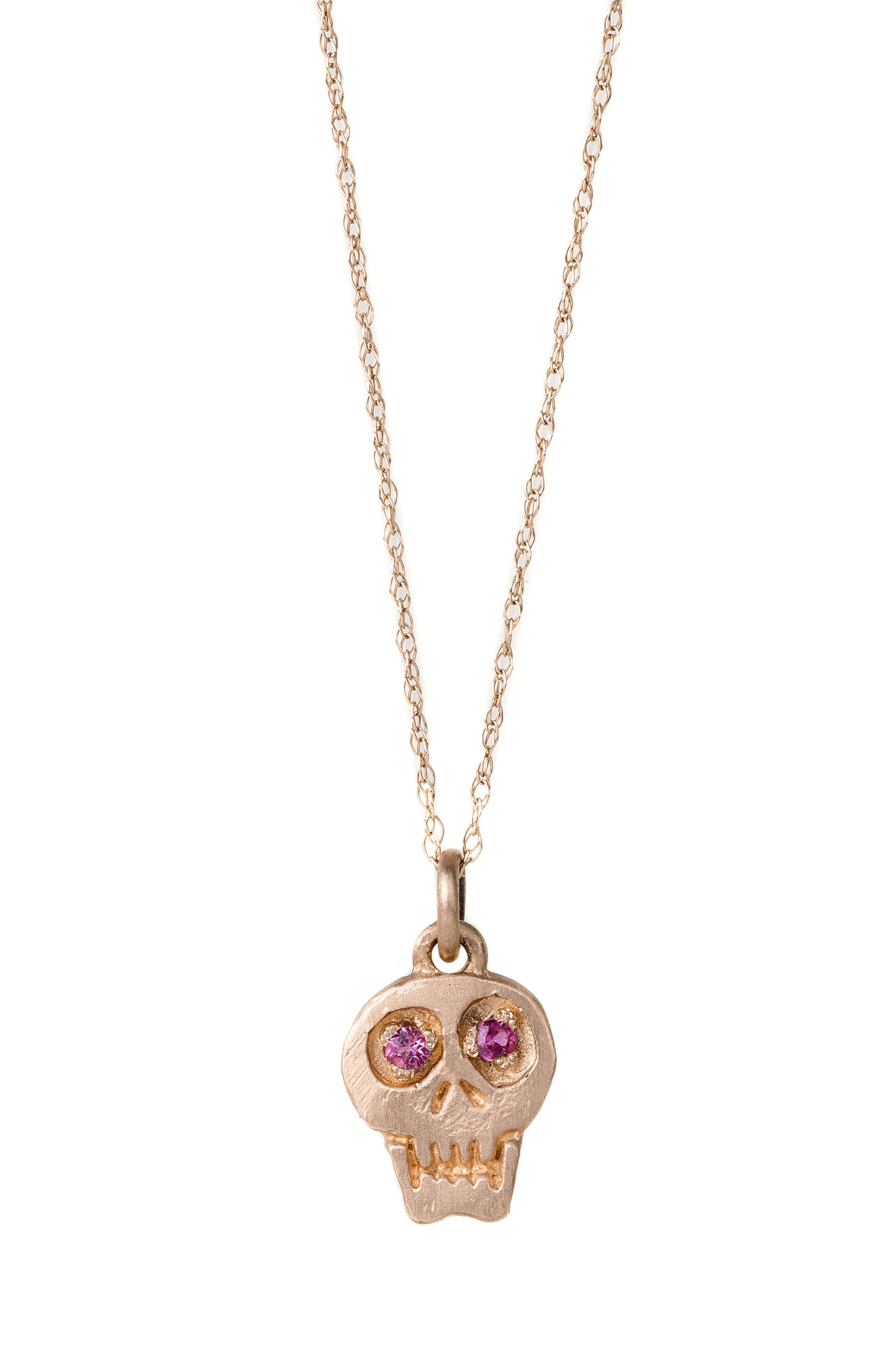 Charmed Skull Hot Pink Sapphire Necklace - 14k Gold