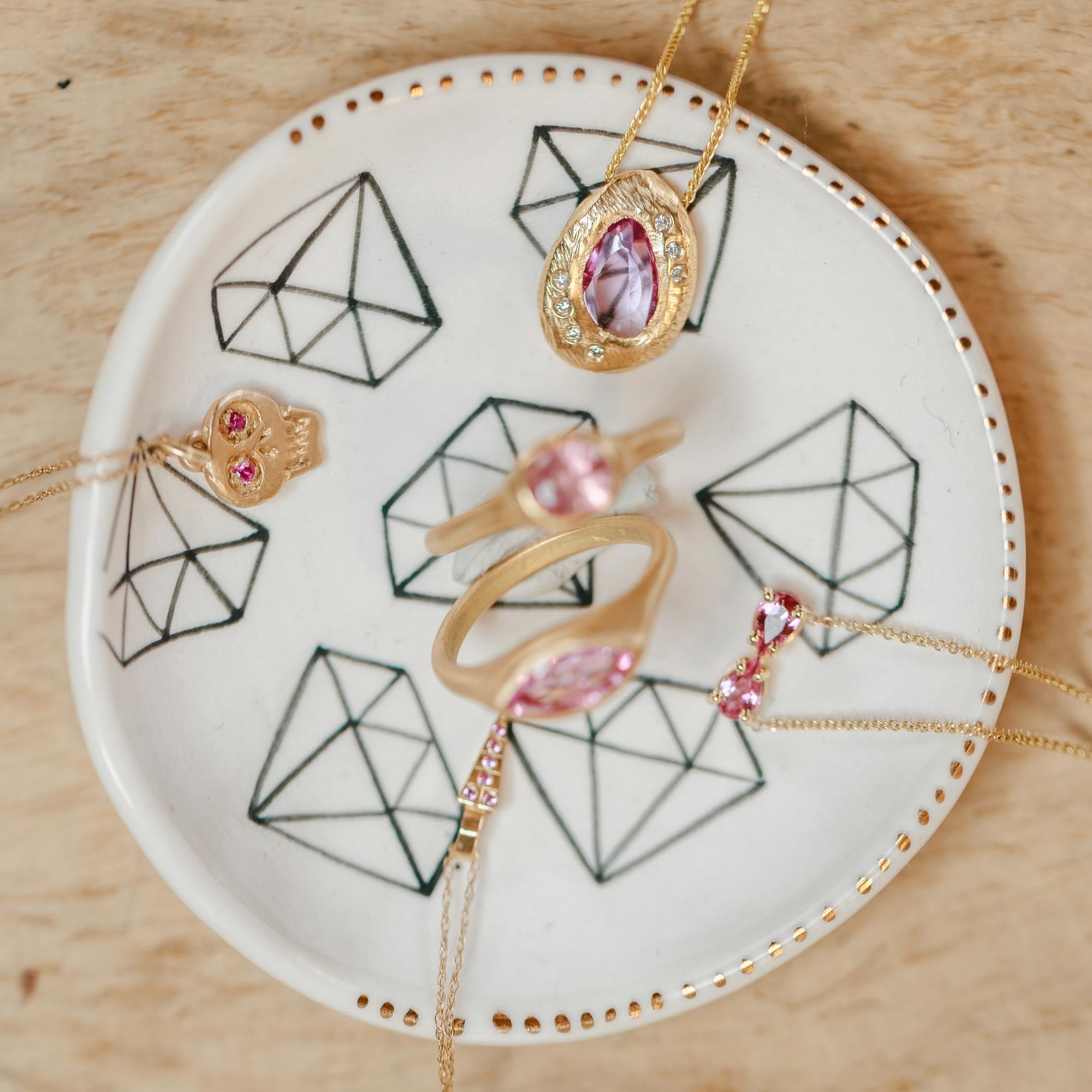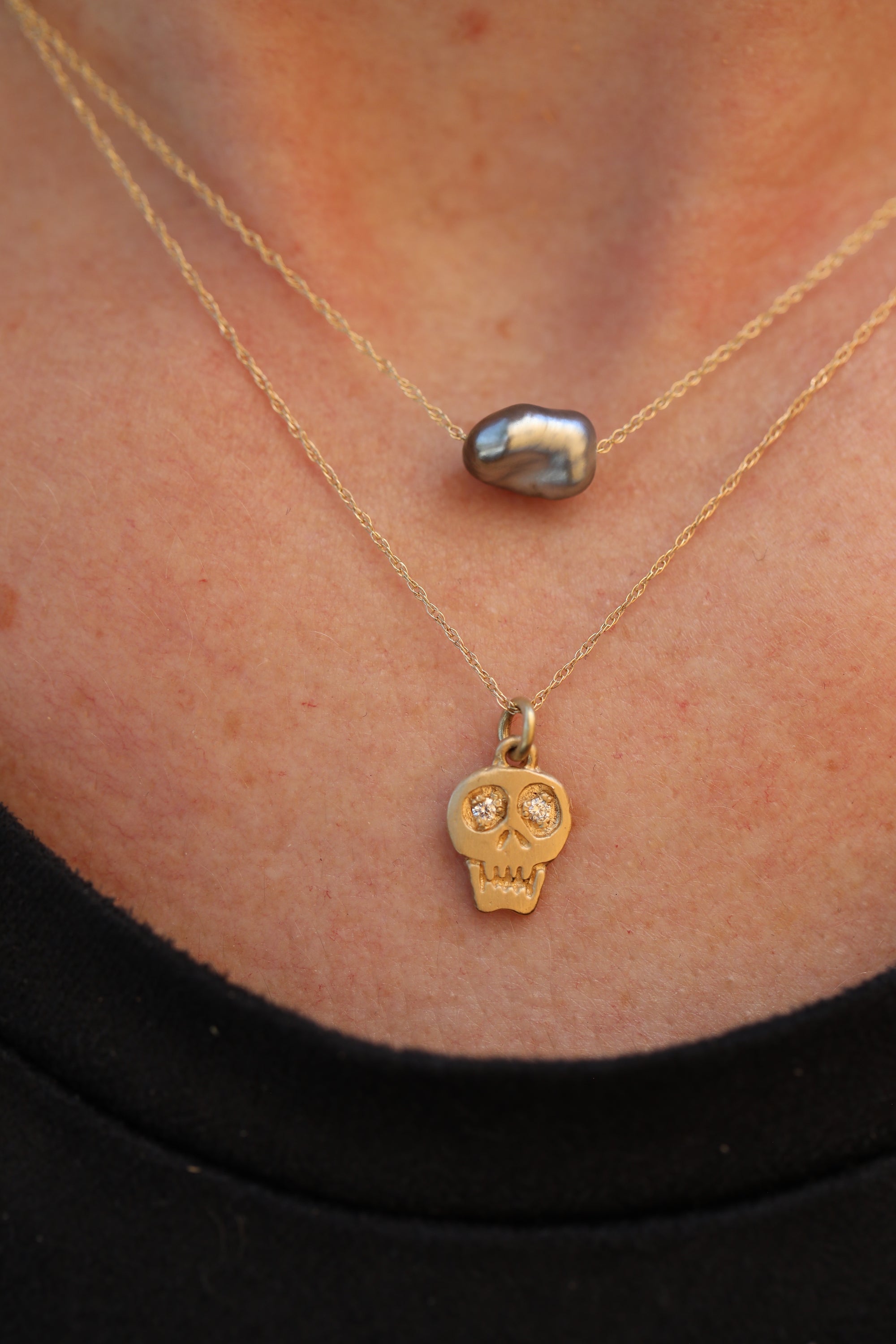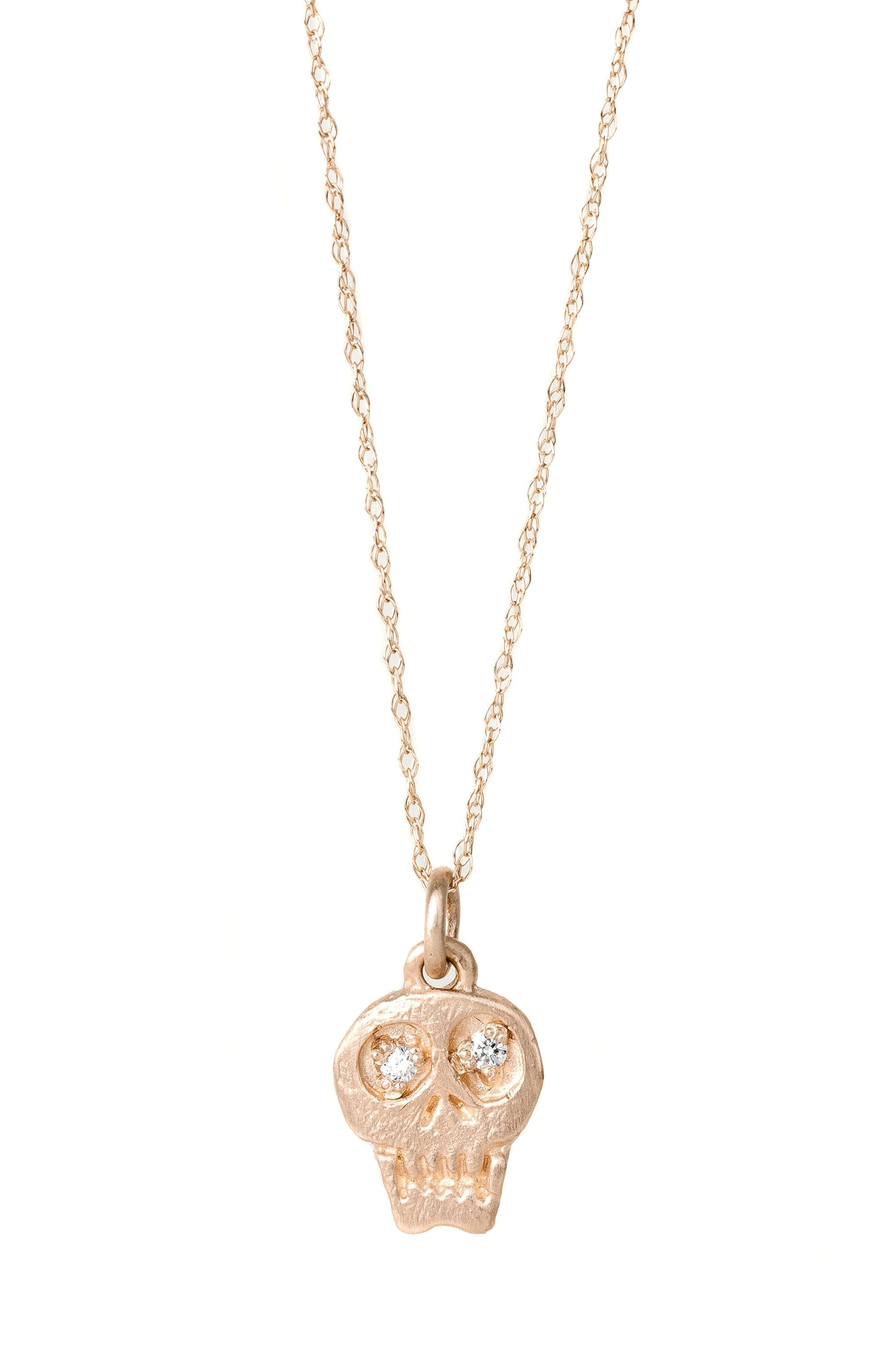 Charmed Skull Hot Pink Sapphire Necklace - 14k Gold