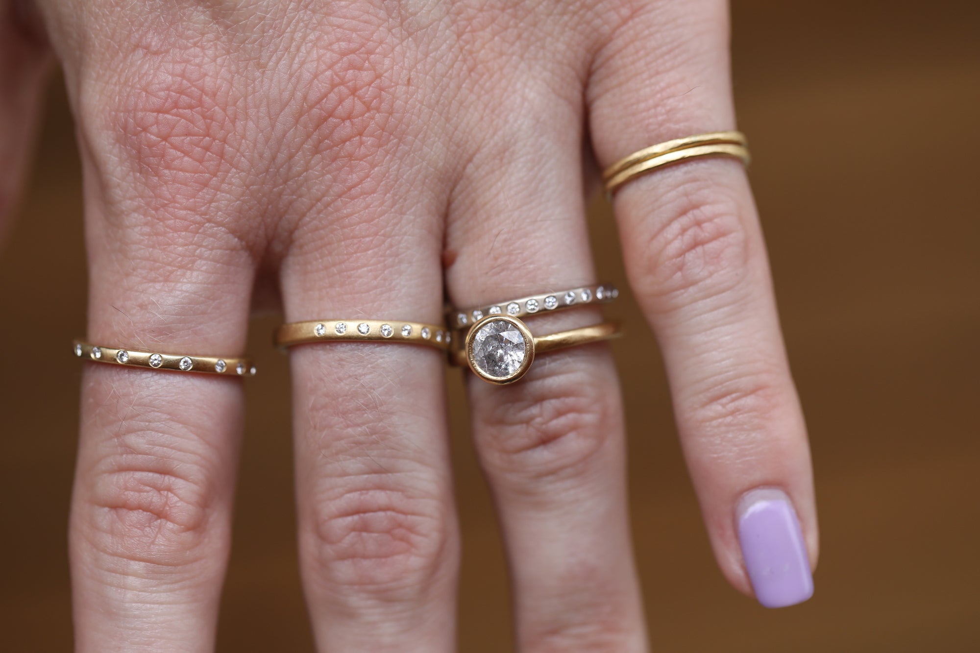 Slice Stacking Rings - 22k/18k Gold, Oxidized Silver + Reclaimed Brilliant Diamonds