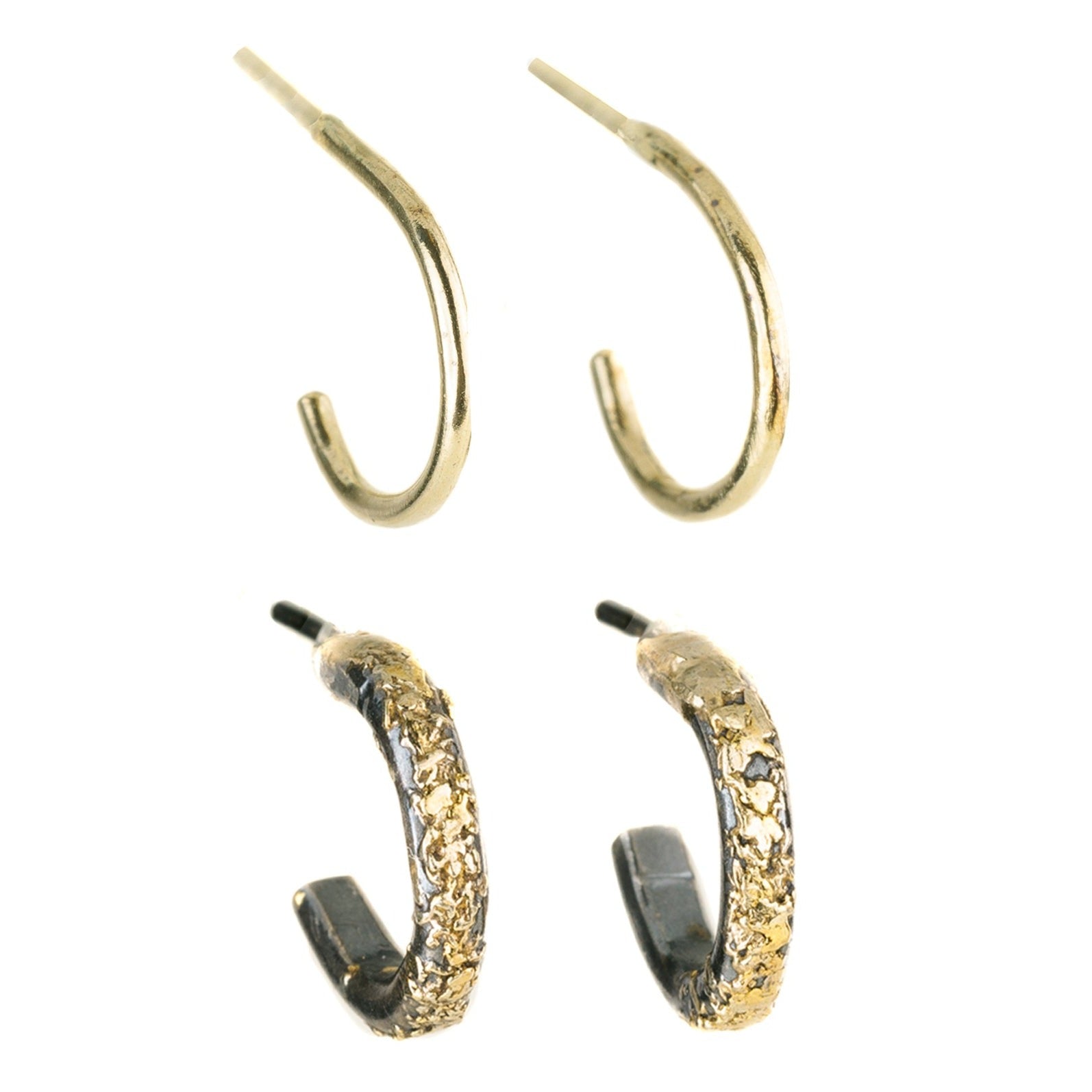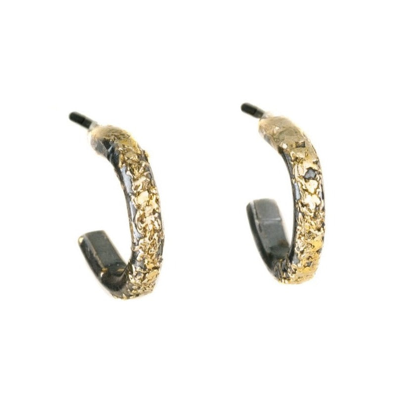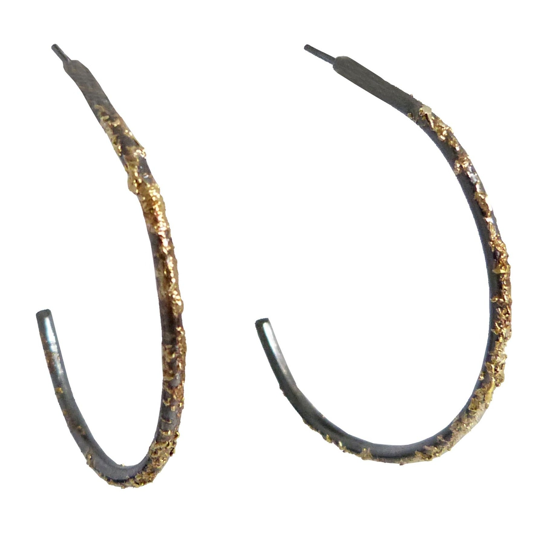 Gold Dust Hoops - 22k Gold Fused with Oxidized Silver