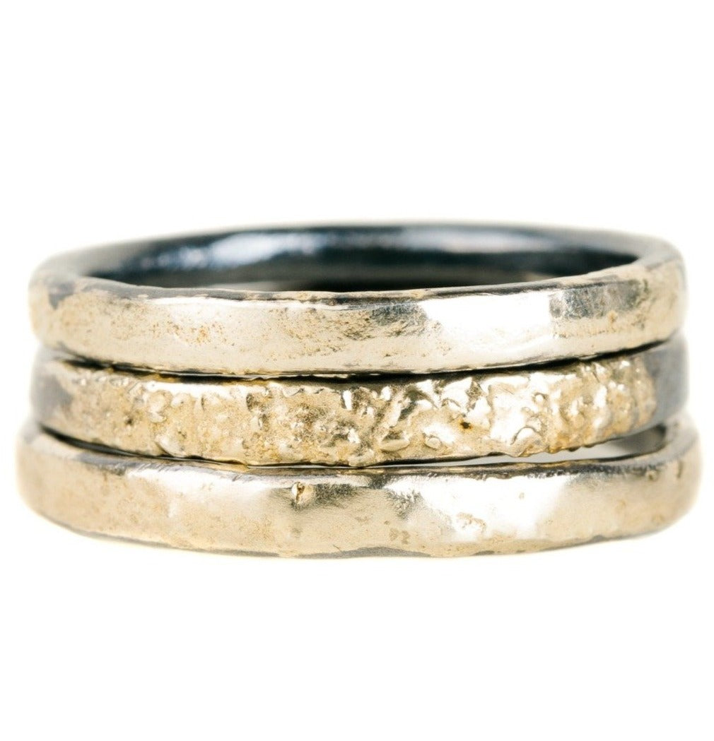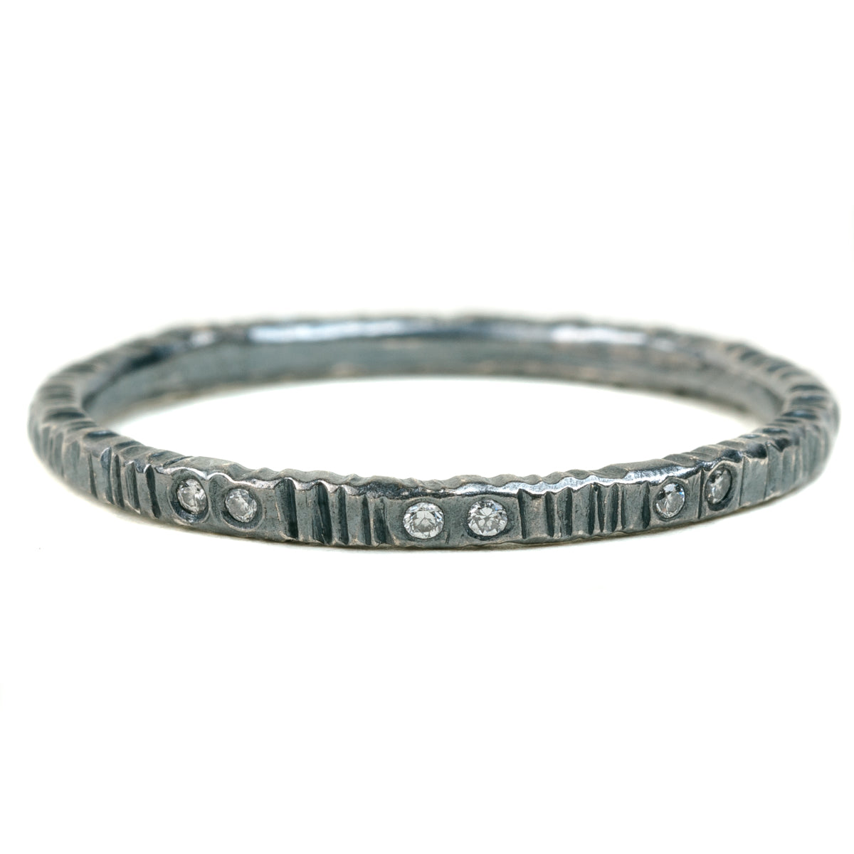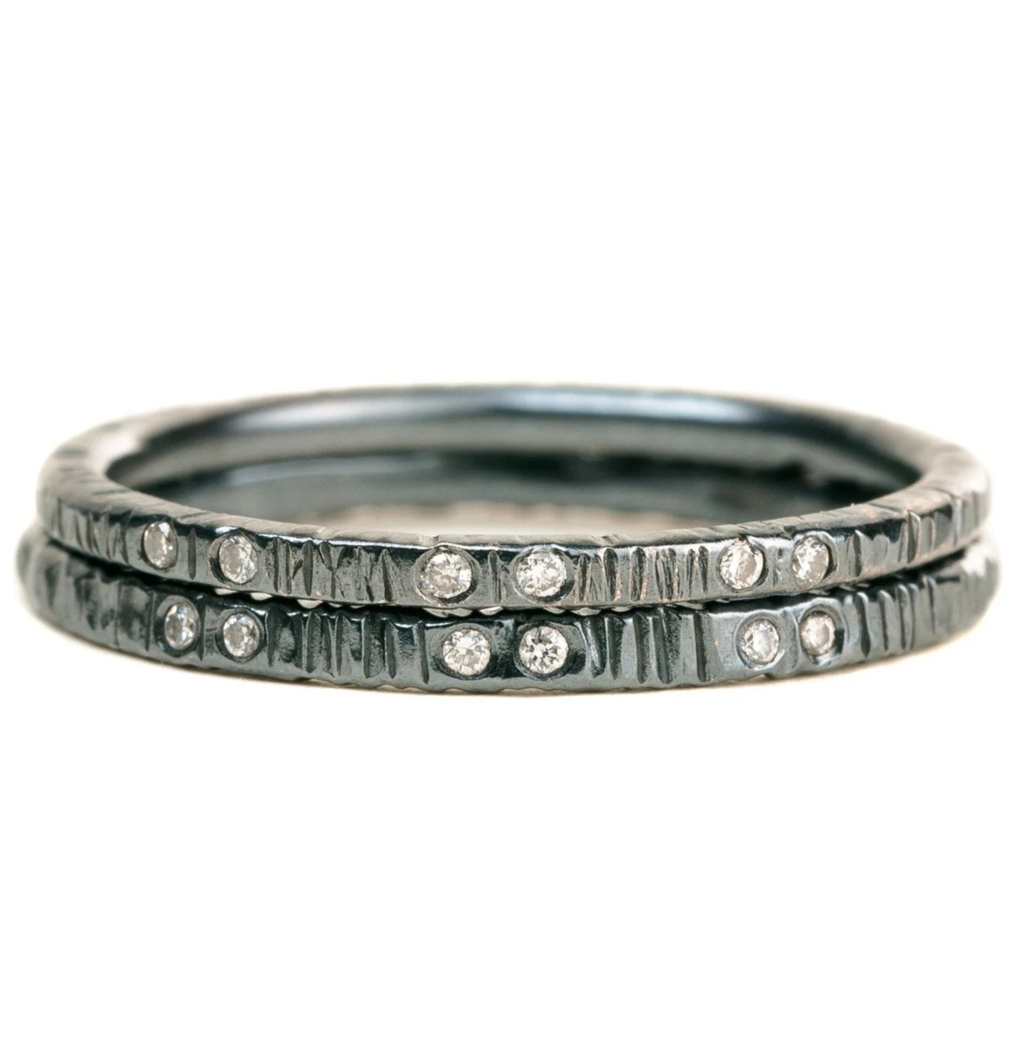Aspen Stackers - Oxidized Silver + Reclaimed Diamonds