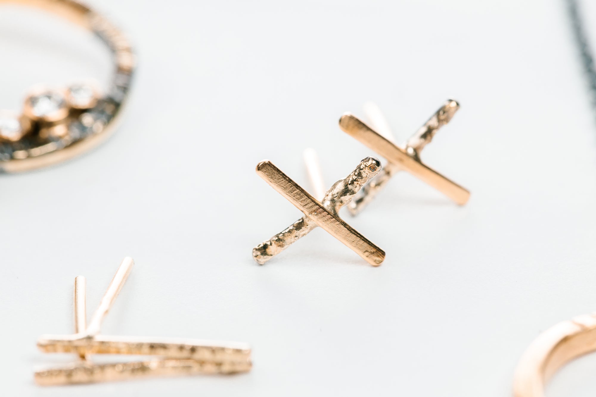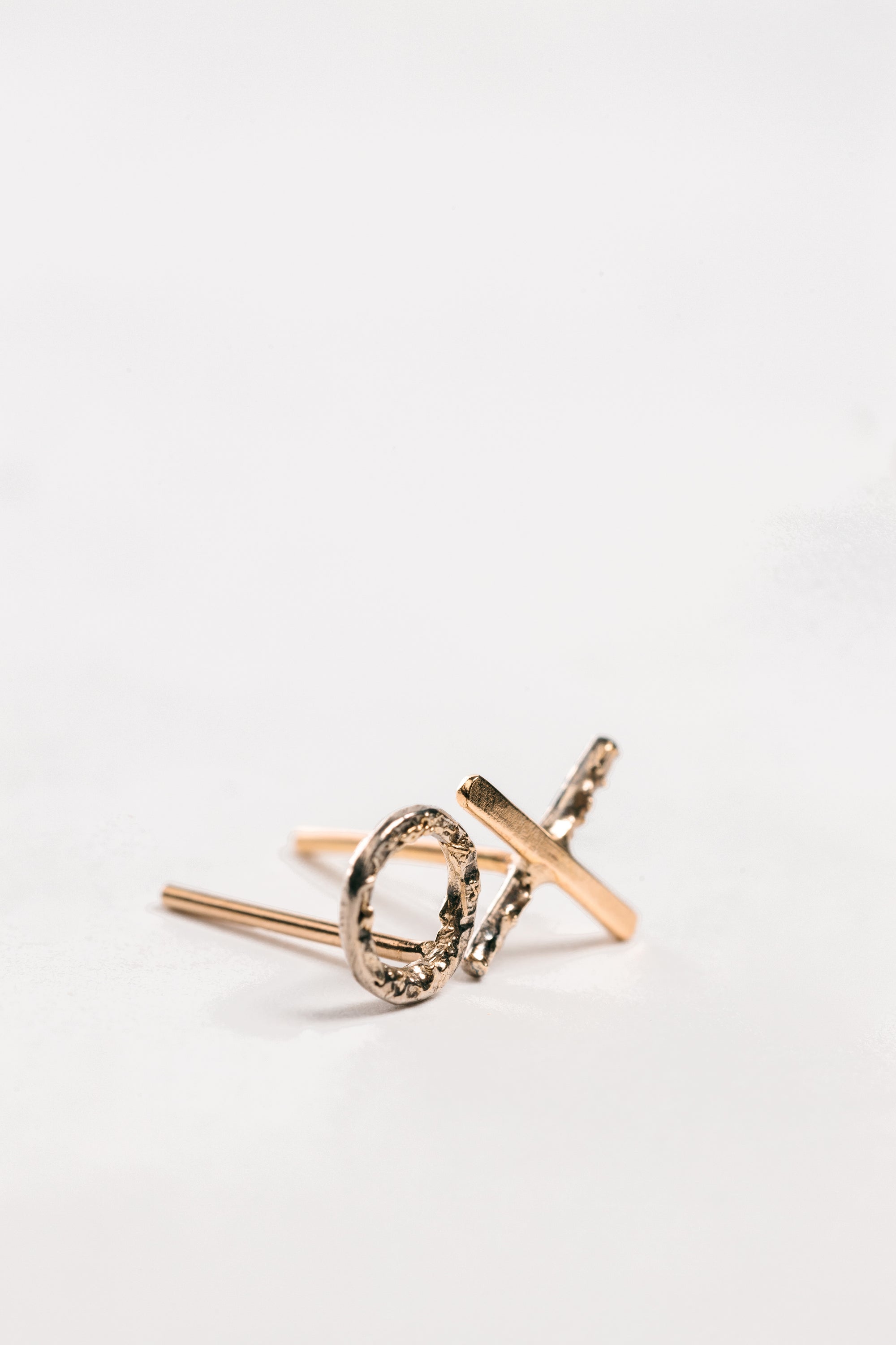 X-O Studs - 22k/18k Gold + Oxidized Silver