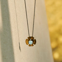 Petite Flora Necklace - Oxidized Brass, Sterling Silver + Blue Moonstone Glass