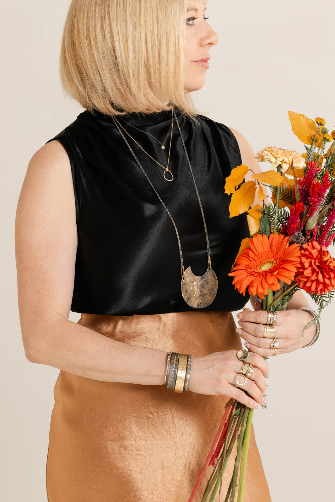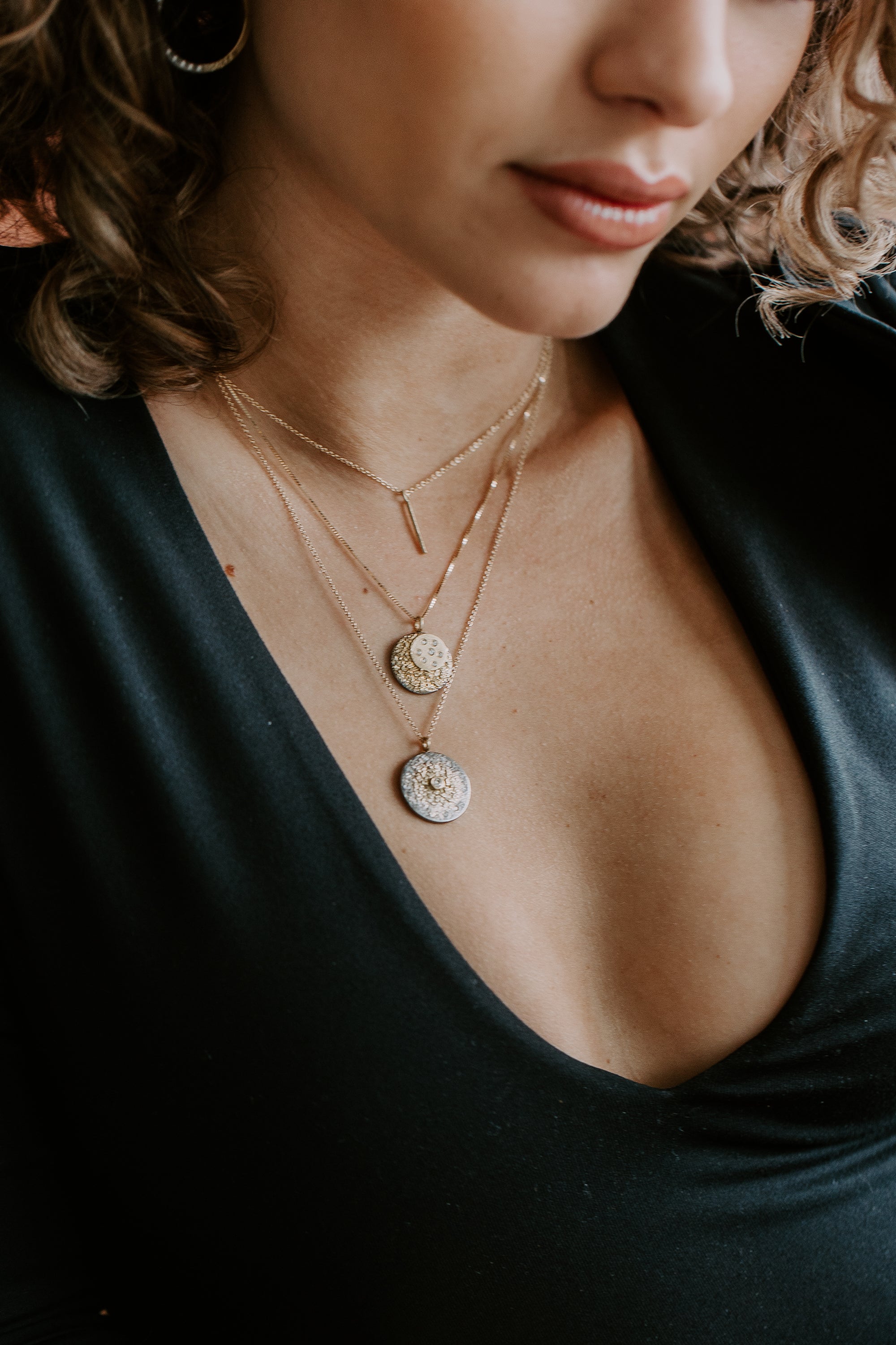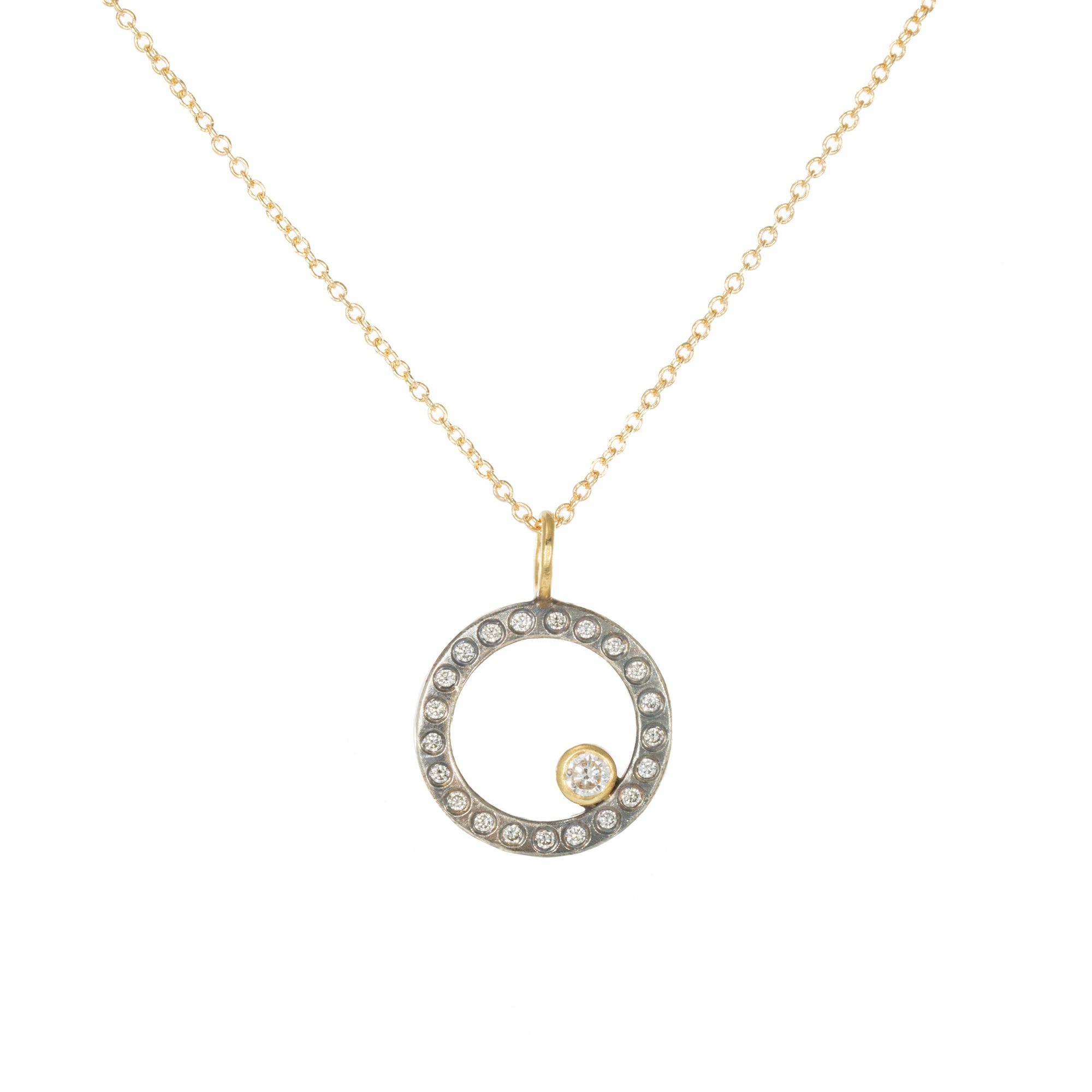 Tricia Necklace on Oxidized Silver Chain - 22k/18k/14k Gold, Oxidized Silver + VS White Diamond
