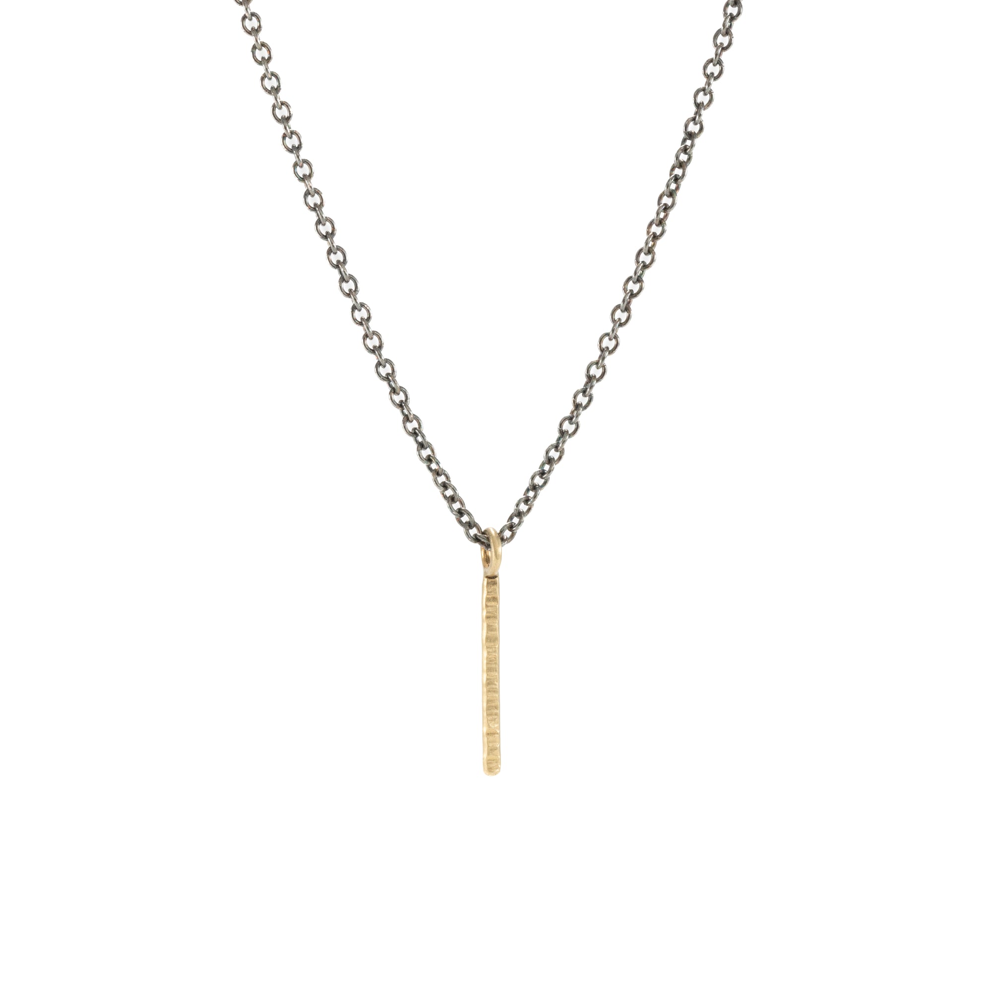 Hammered Gold Bar Necklace -18ky Gold on Oxidized Silver Chain