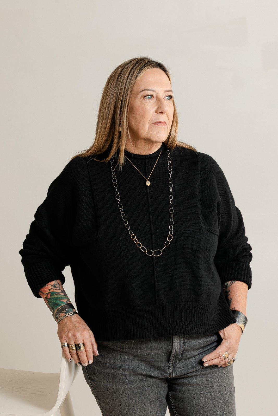 14k Breezy Chain Link Necklace - 14k Gold + Oxidized Silver
