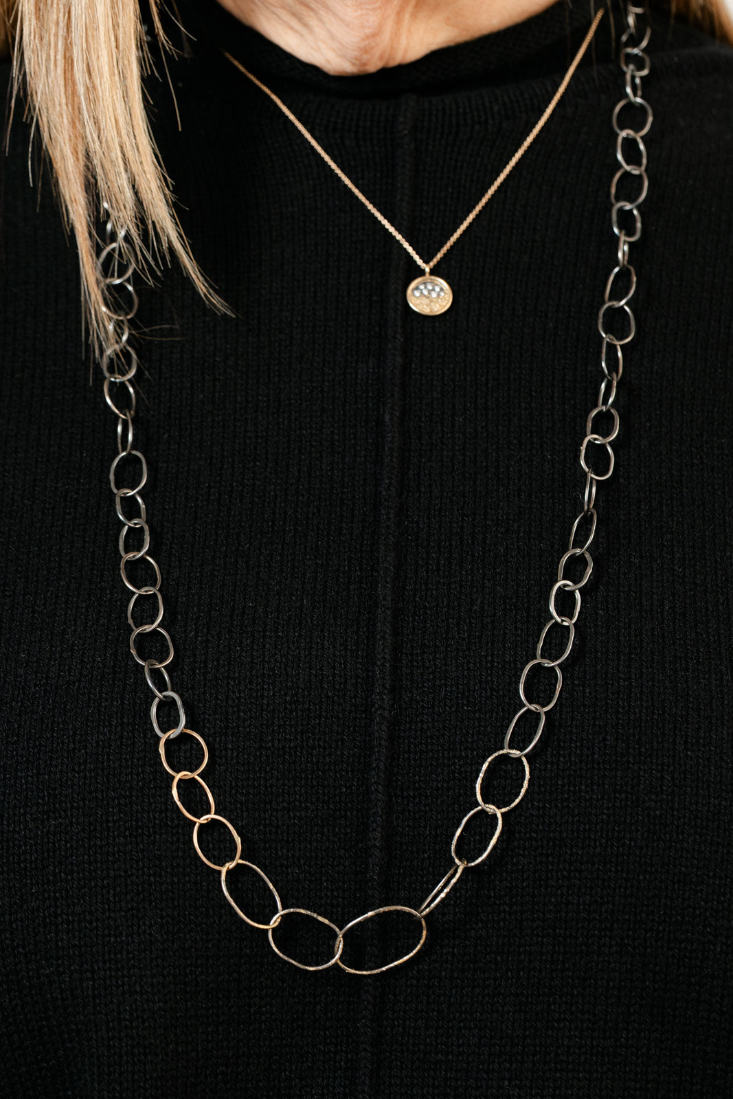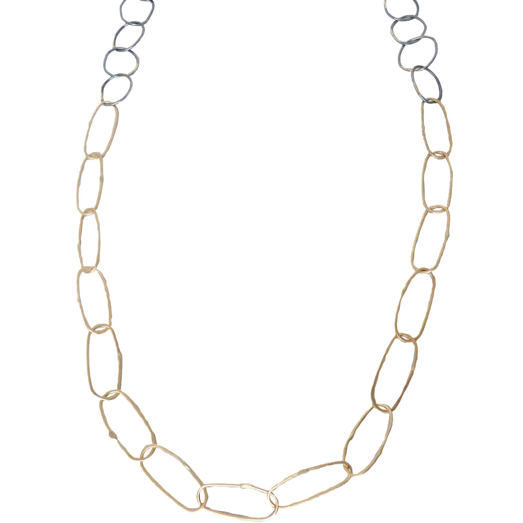 14k Organic Black + Gold Chain Link Necklace - 22k/14k Gold + Oxidized Silver