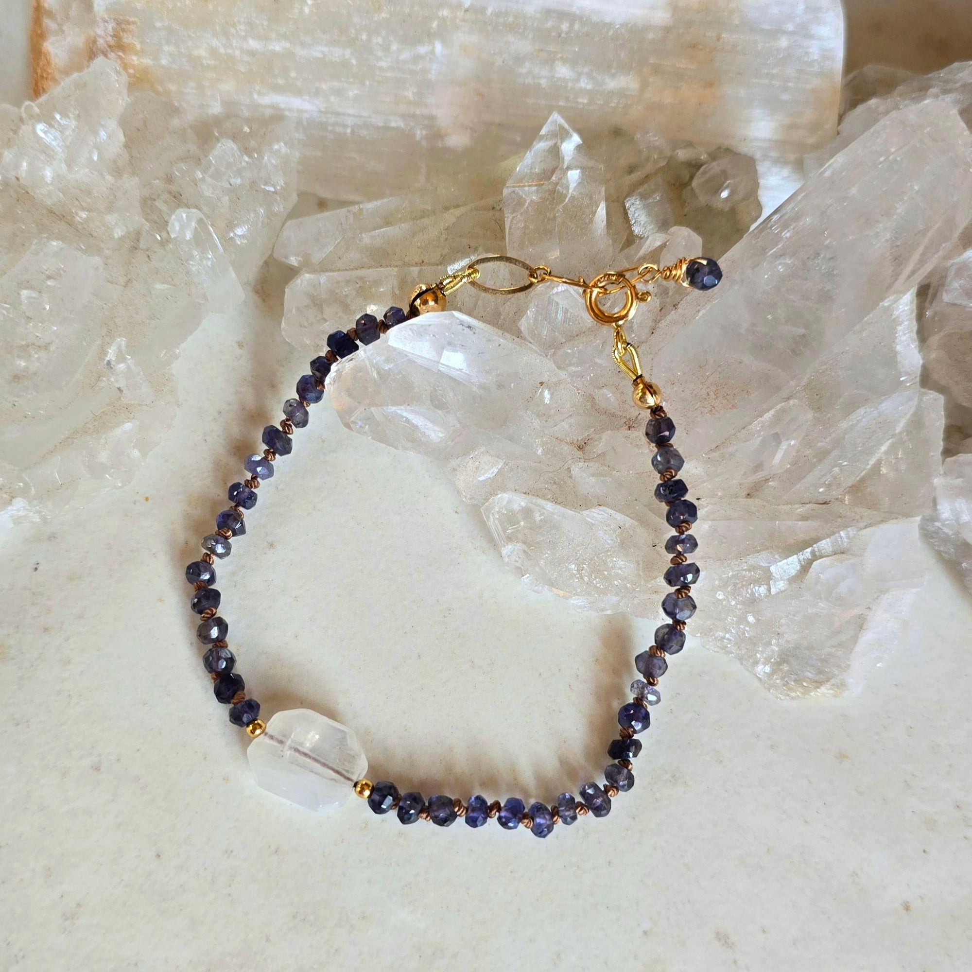 Moonstone + Lolite - Beige Knot Bracelet