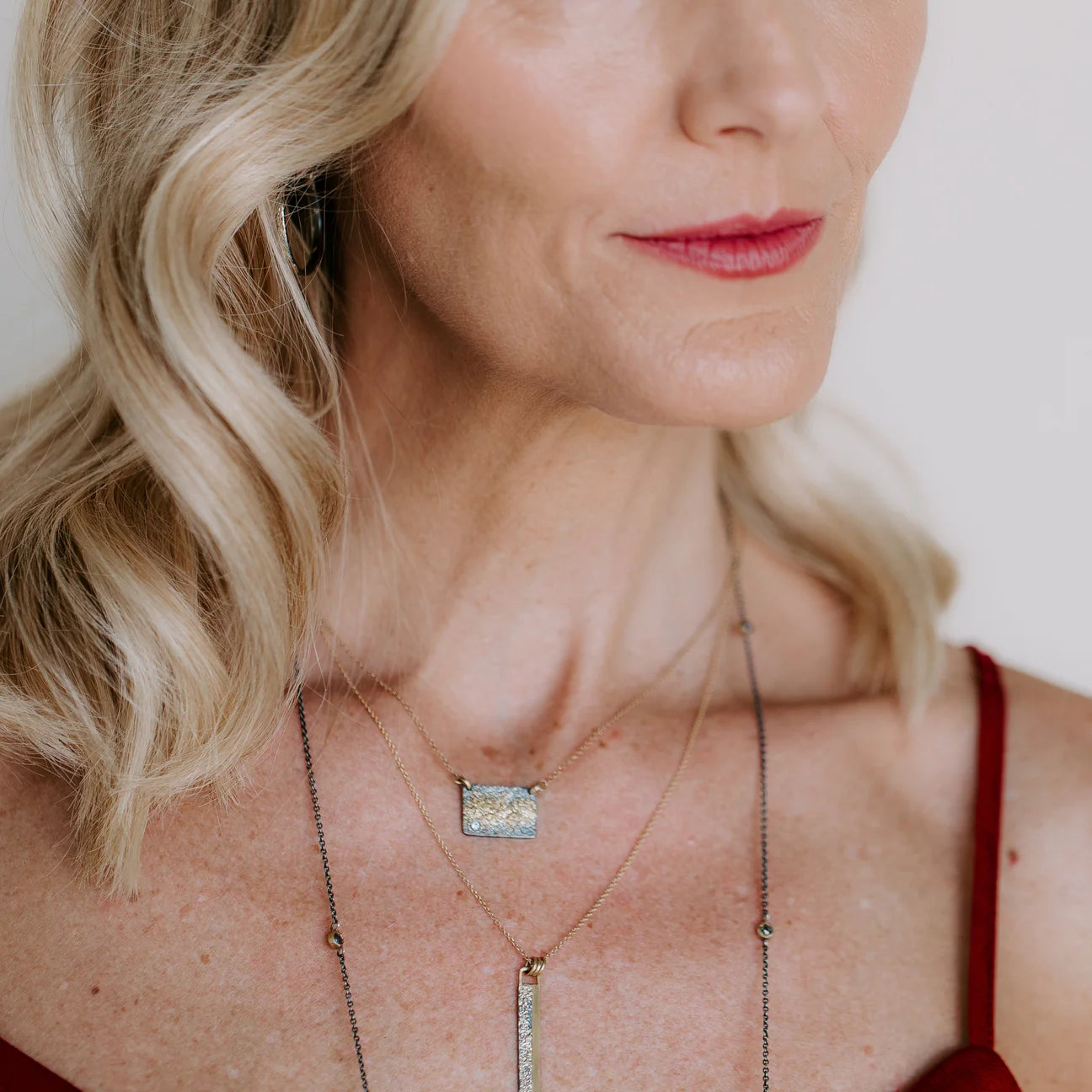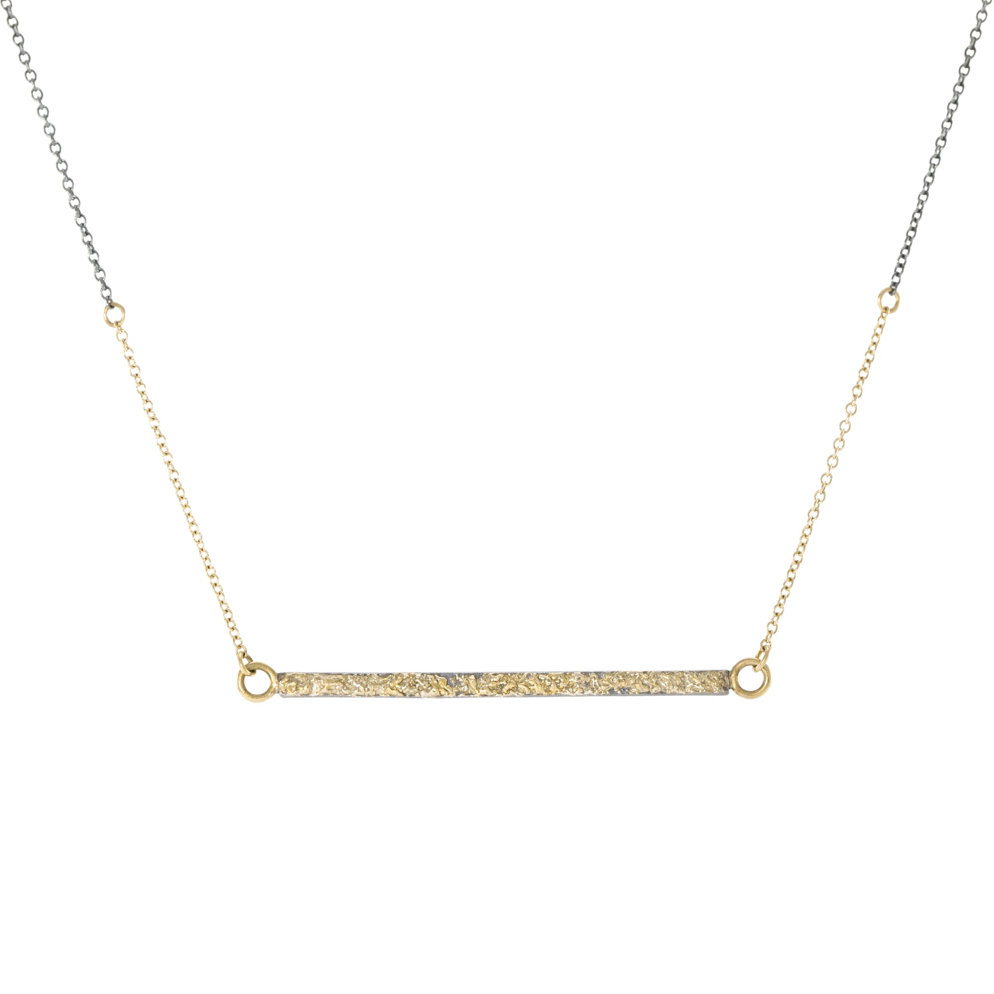 Terra Bar Necklace on Two-Tone Chain - 22k/18k/14k Gold + Oxidized Silver