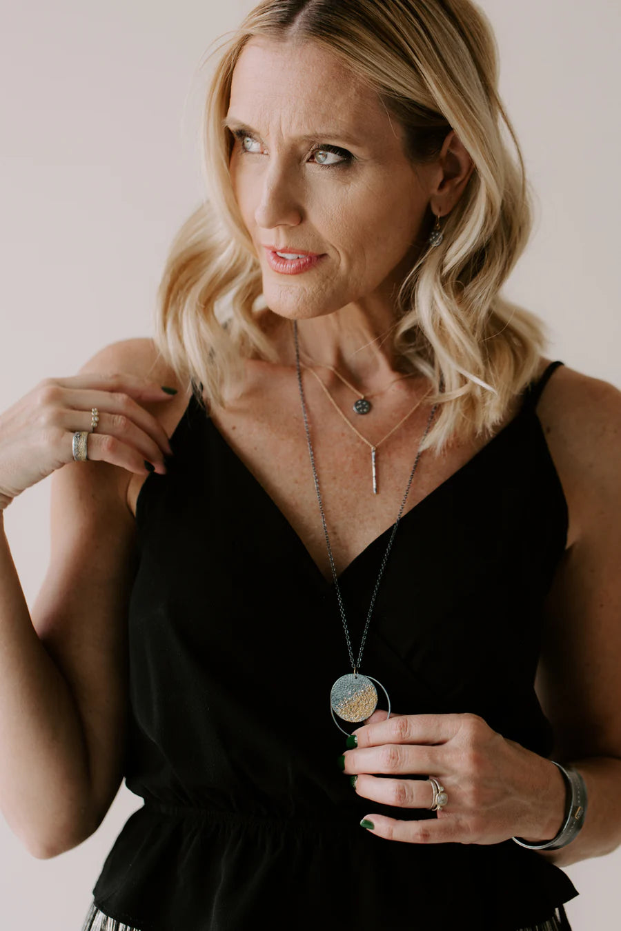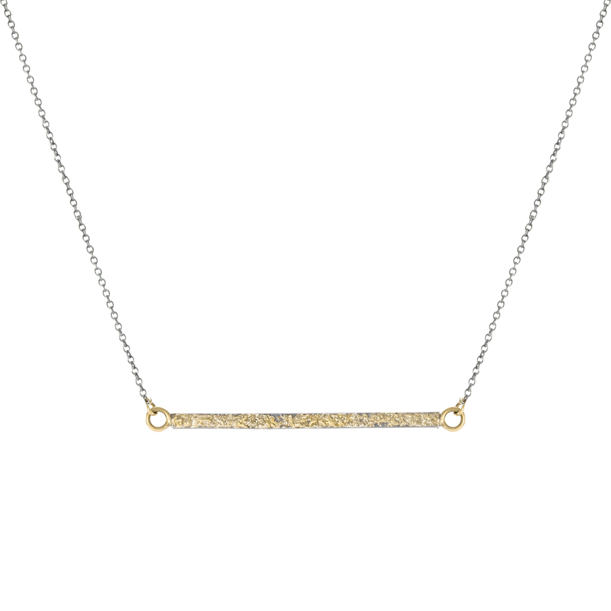 Terra Bar Necklace on Oxidized Silver Chain - 22k/18k/14k Gold + Oxidized Silver