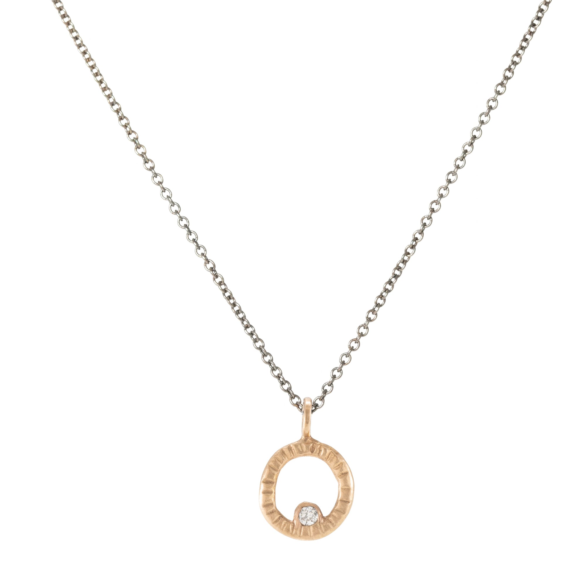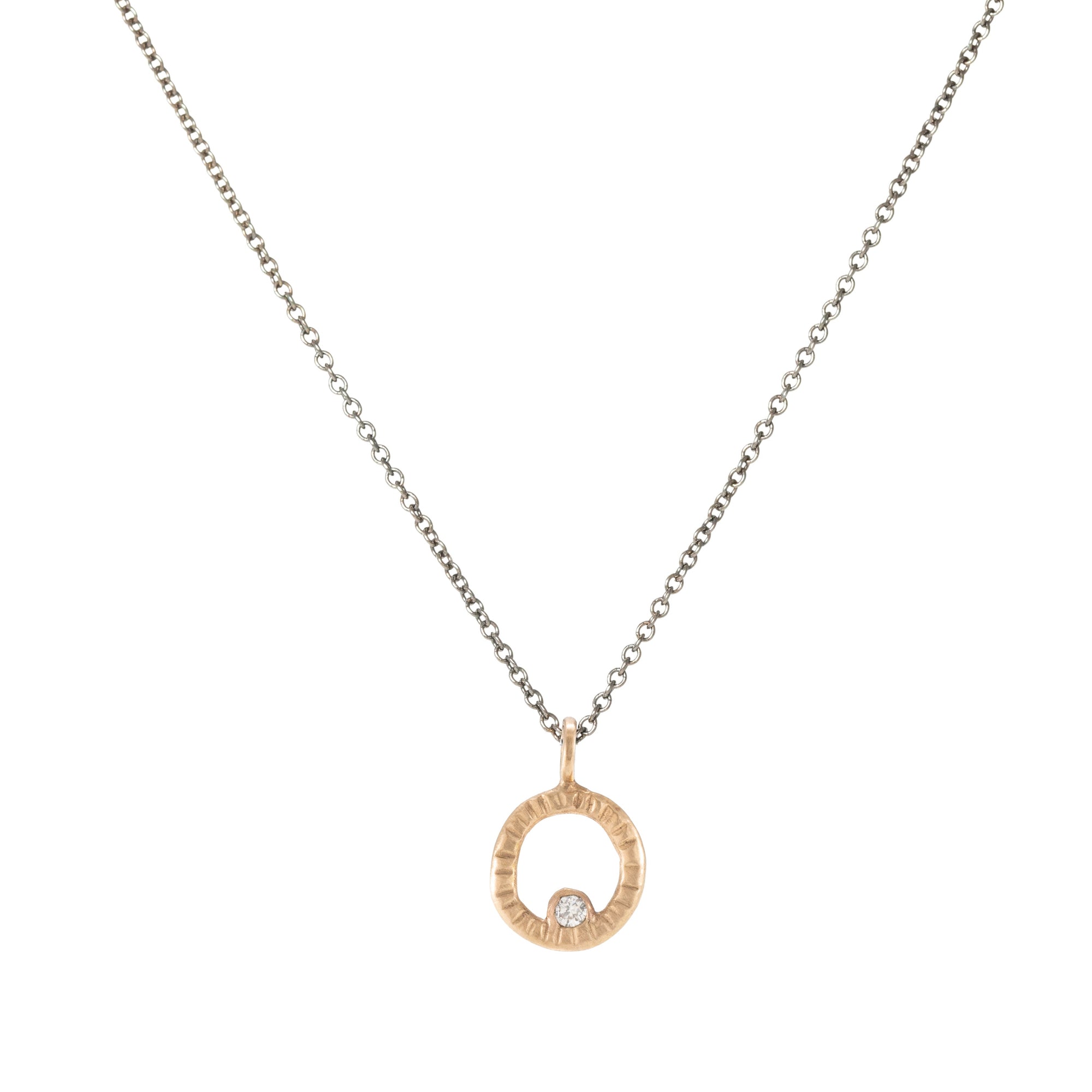 18k Rose Gold Petite Turning Aspen Charm Necklace - 18k/14k Gold, Oxidized Silver + VS White Diamond