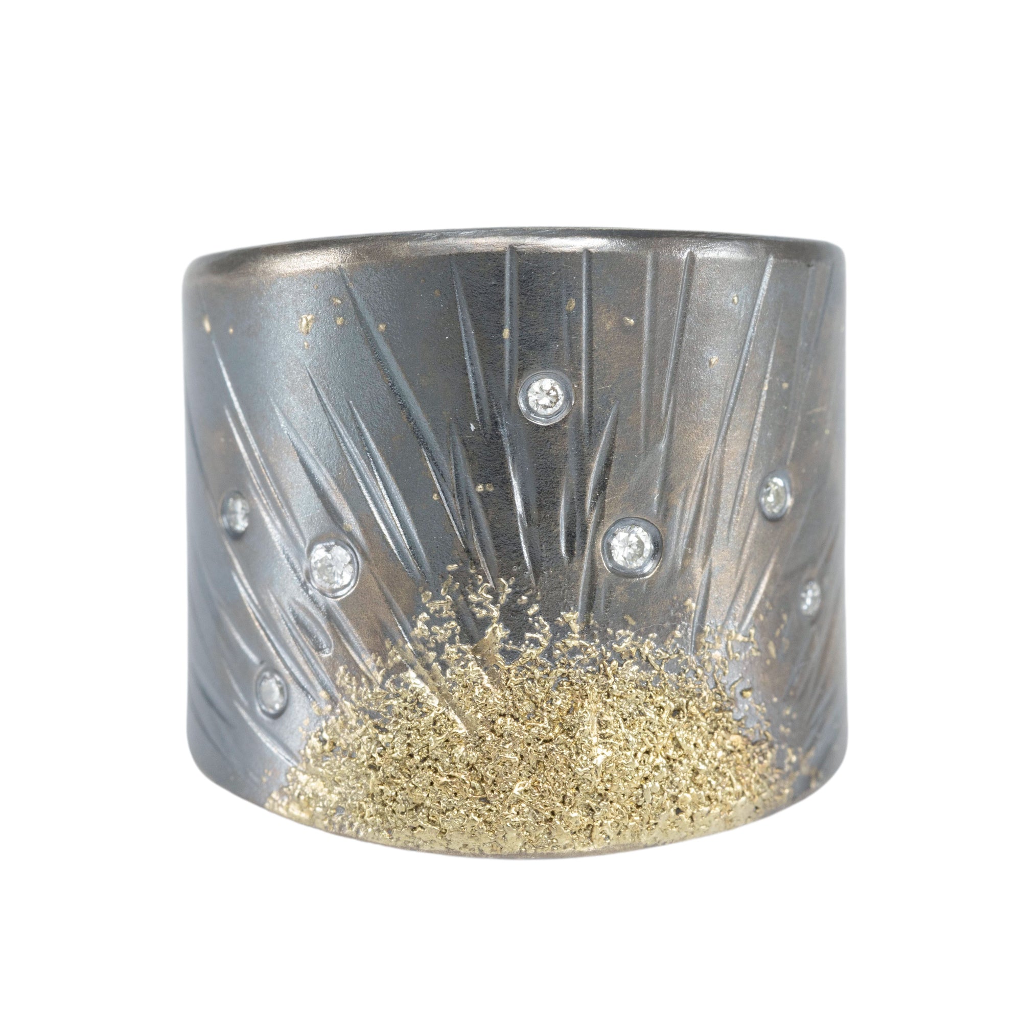 Sun Rays Cigar Band - 22k Gold, Oxidized Silver + VS White Diamonds