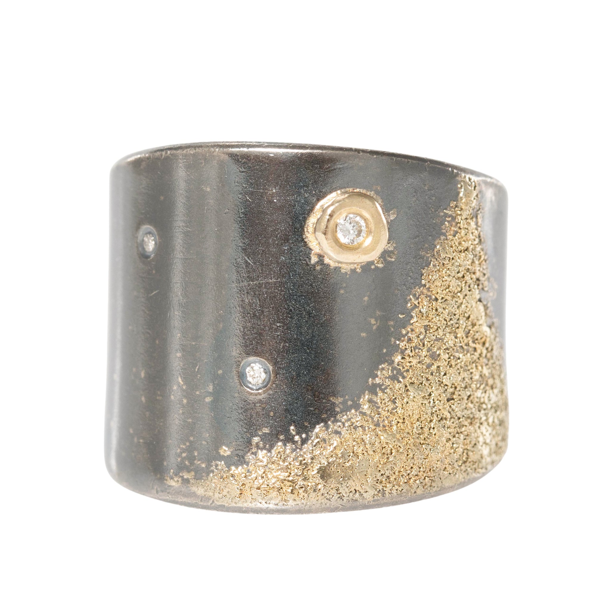 Night Sky Cigar Band - 22k/18k Gold, Oxidized Silver + VS White Diamonds