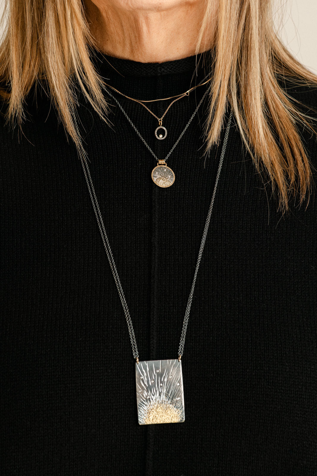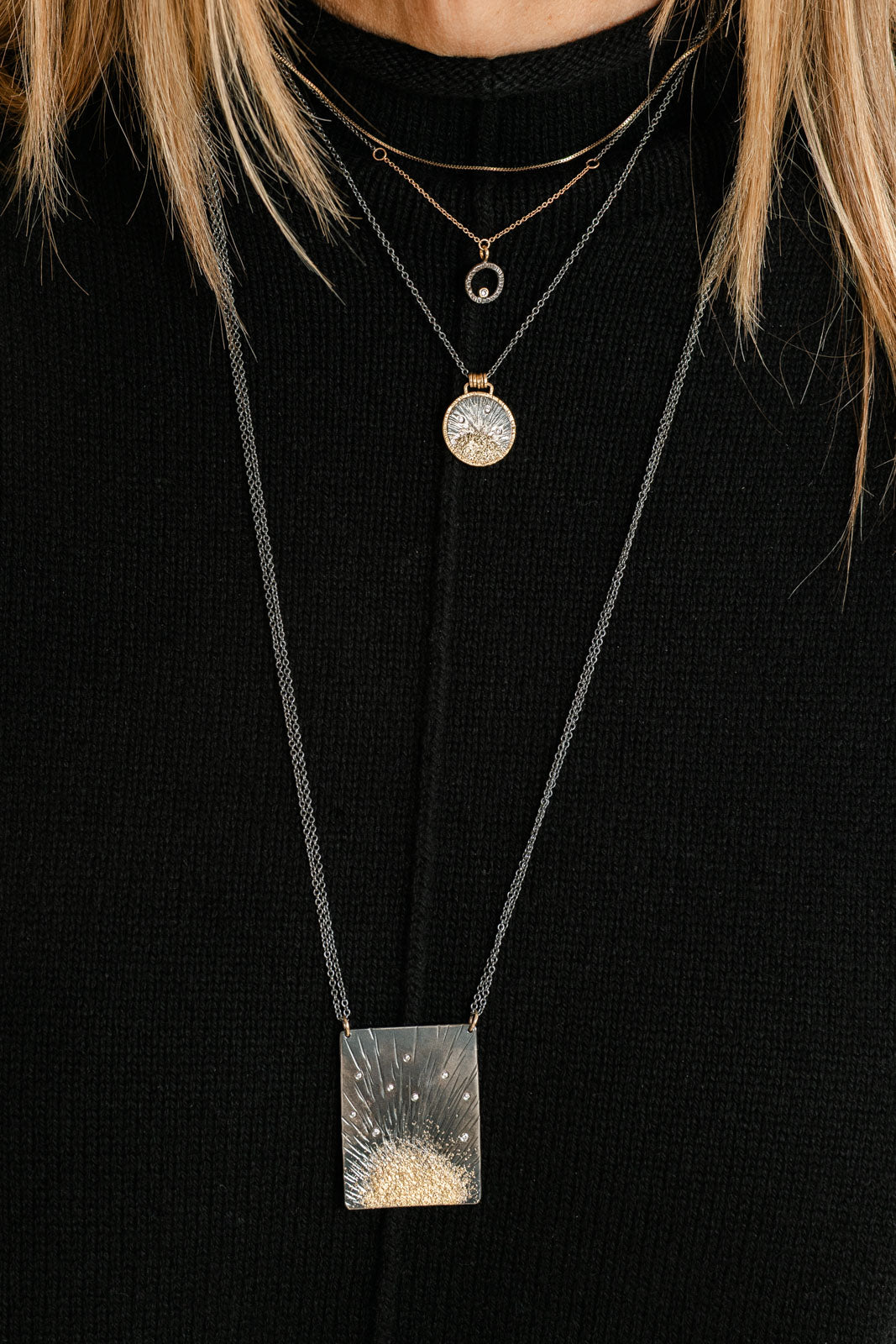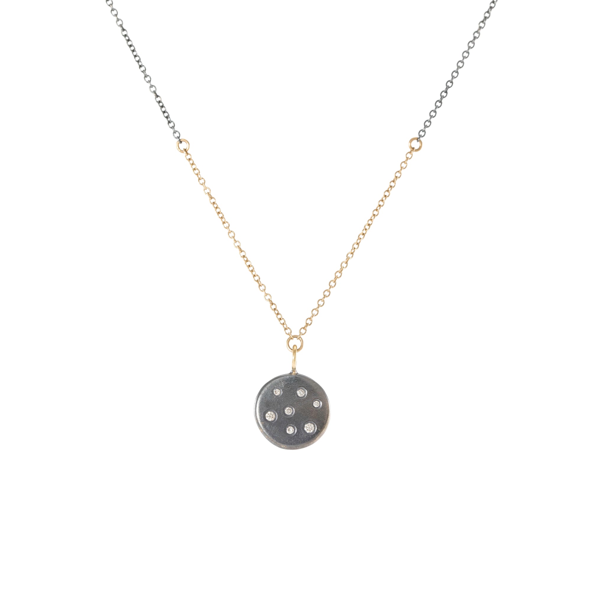 Night Sky Necklace - 22k/14k Gold, Oxidized Silver + VS White Diamonds