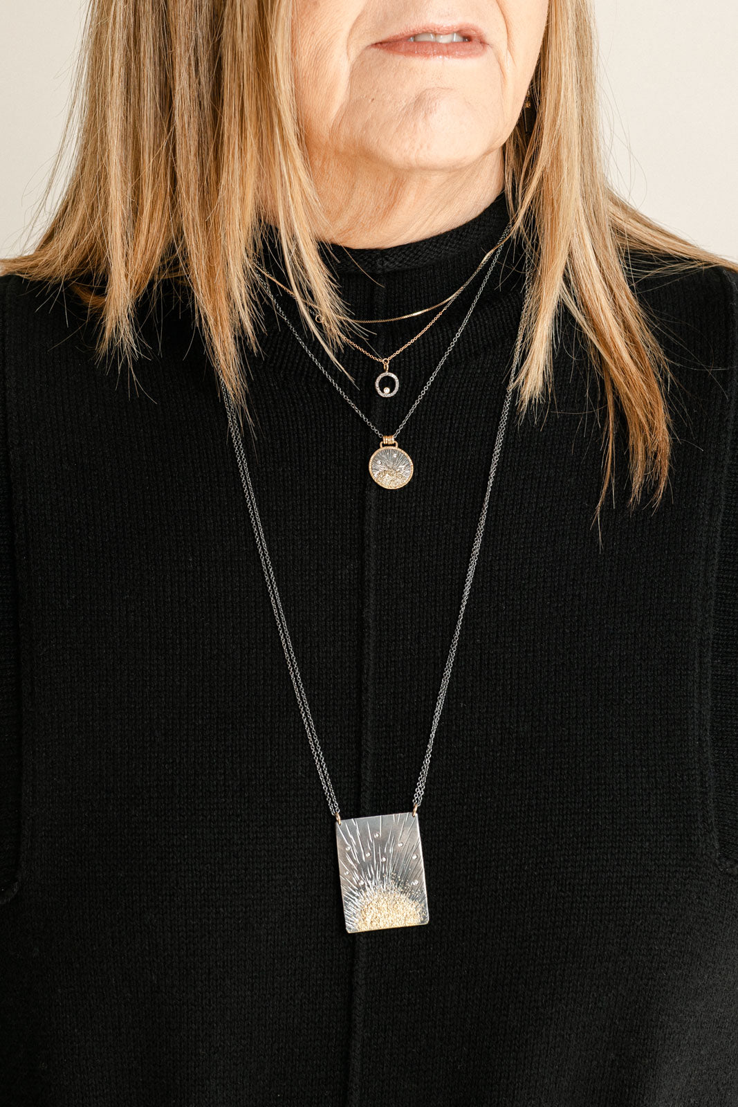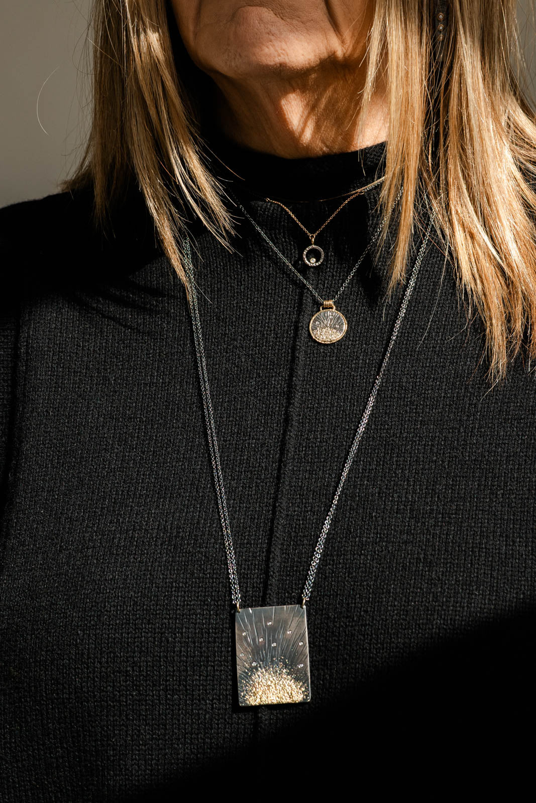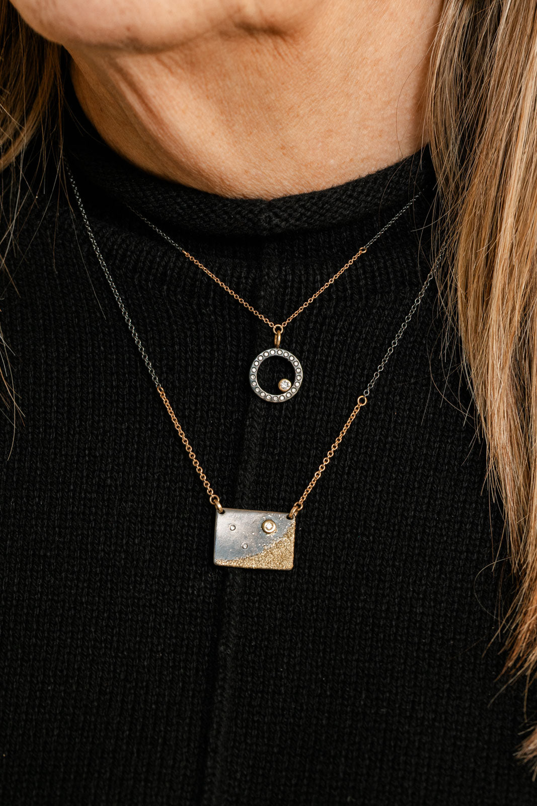 Night Sky Necklace - 22k/14k Gold, Oxidized Silver + VS White Diamonds