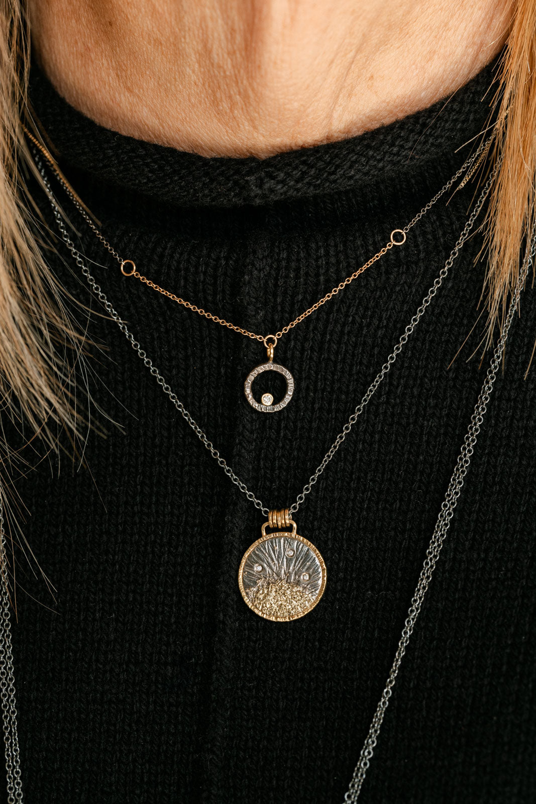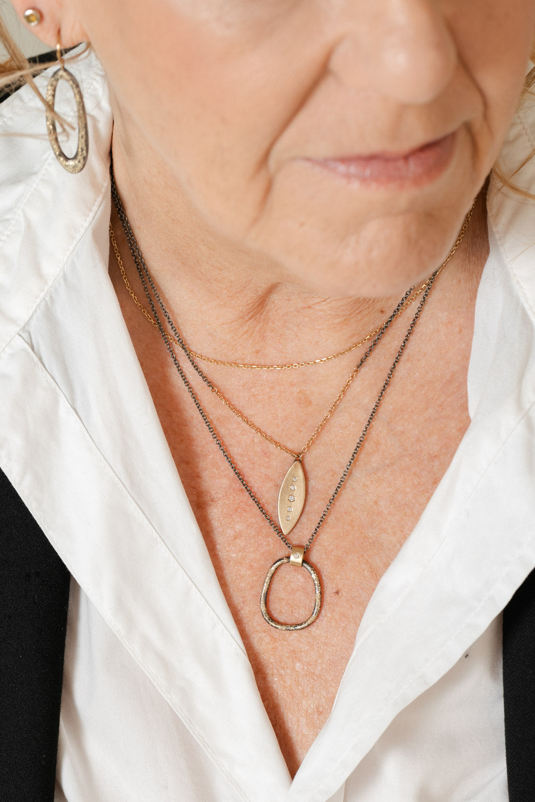 Oxidized Silver Everyday Scattered Diamond Pendant on Two-Tone Chain - 14k Gold, Oxidized Silver + VS White Diamonds