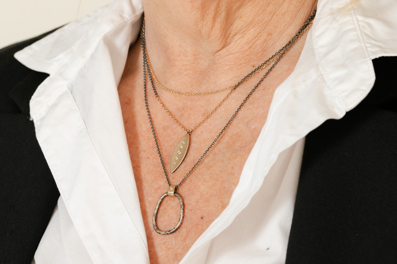 18ky Gold Petite Turning Aspen Charm Necklace - 18ky Gold, Oxidized Silver + VS White Diamond