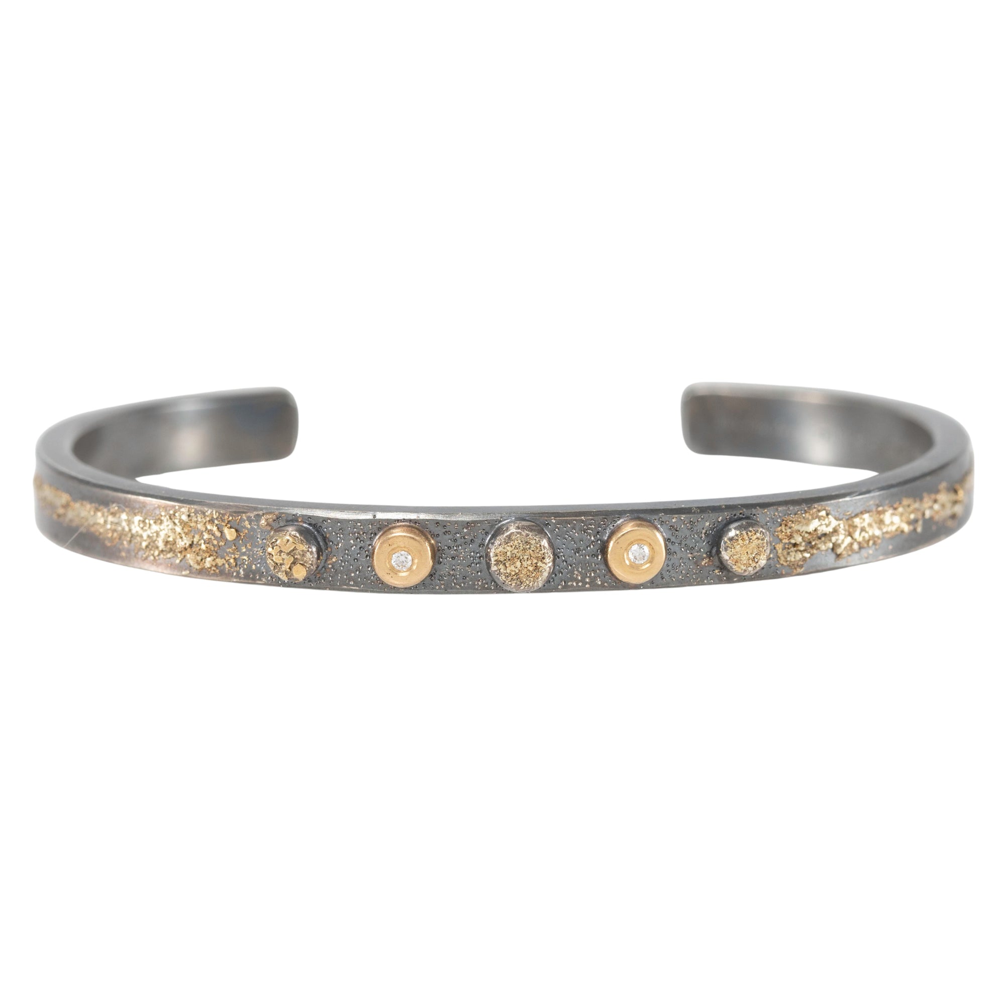 Sunnyside Dusted Diamond Cuff - 22k/18k Gold + Oxidized Silver
