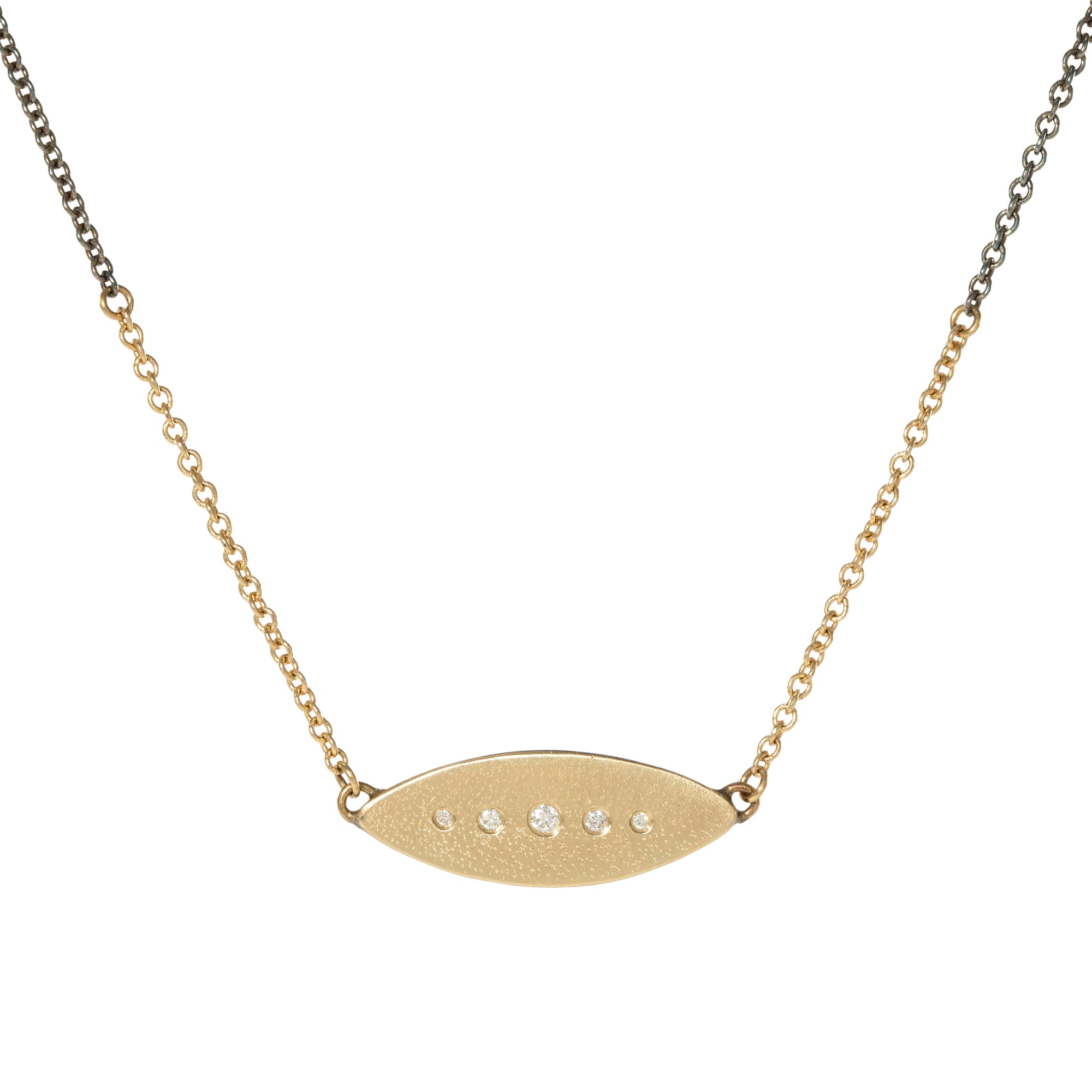 Peas in a Pod Horizontal Necklace - 14k Gold, Oxidized Silver + VS White Diamonds