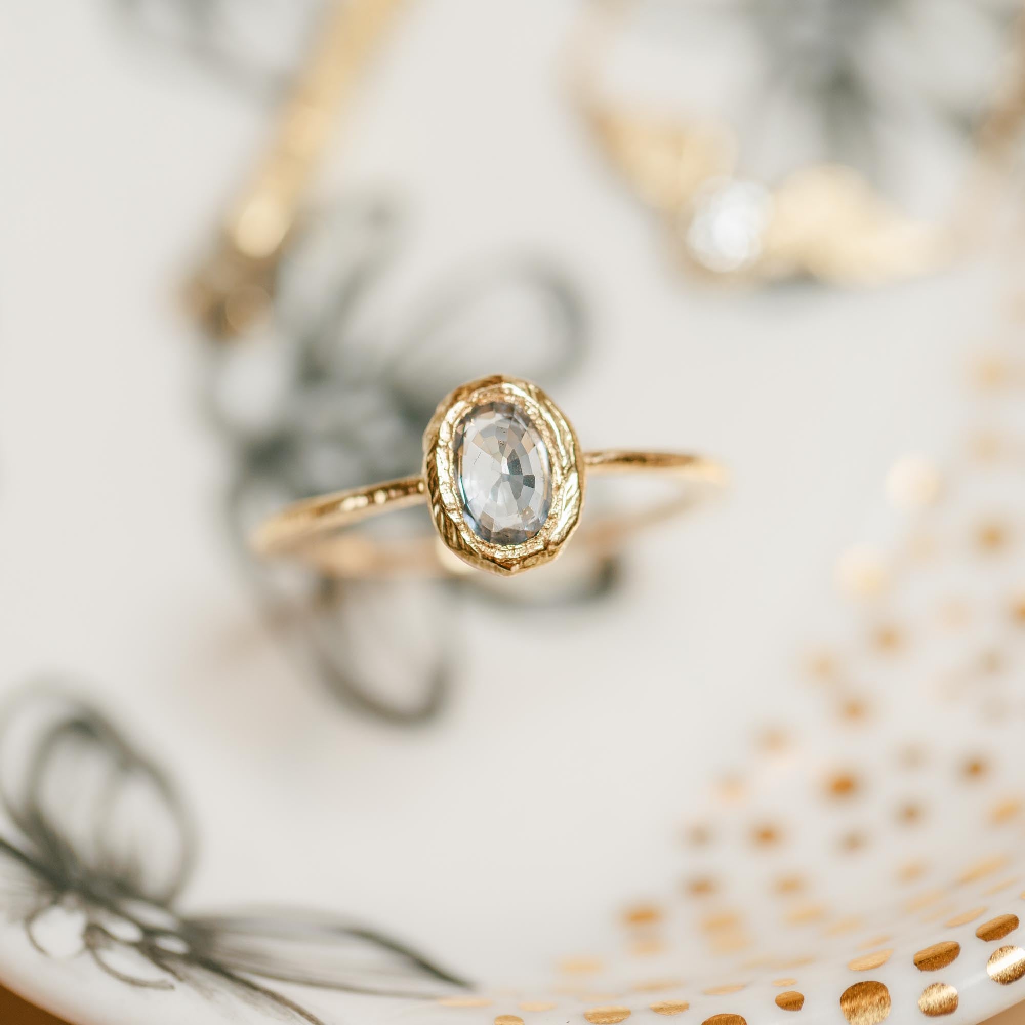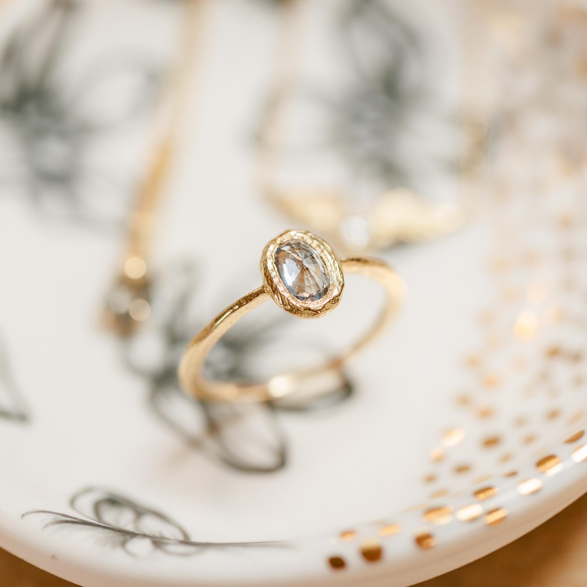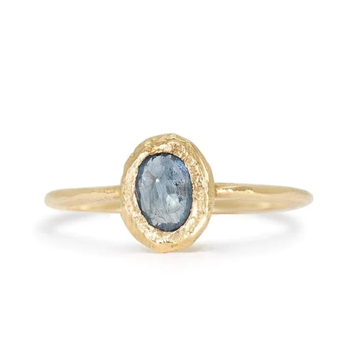 Oval North/South Ring - 18k Gold + Blue Sapphire