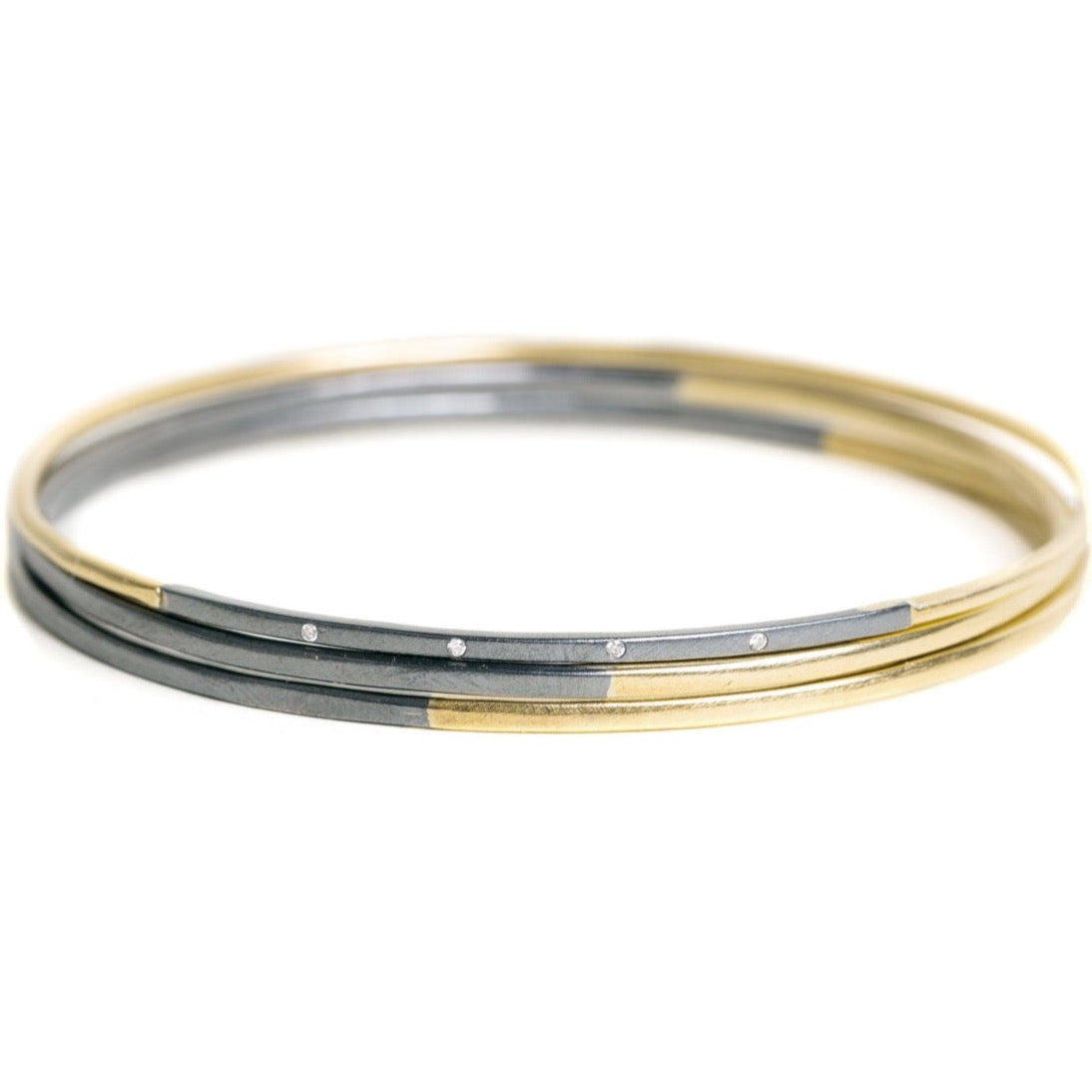 Legacy Diamond Bangle - 18ky Gold, Oxidized Silver + VS Diamonds
