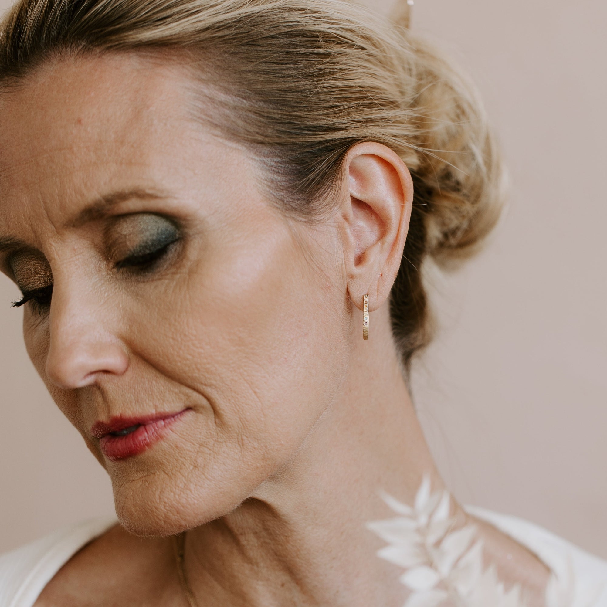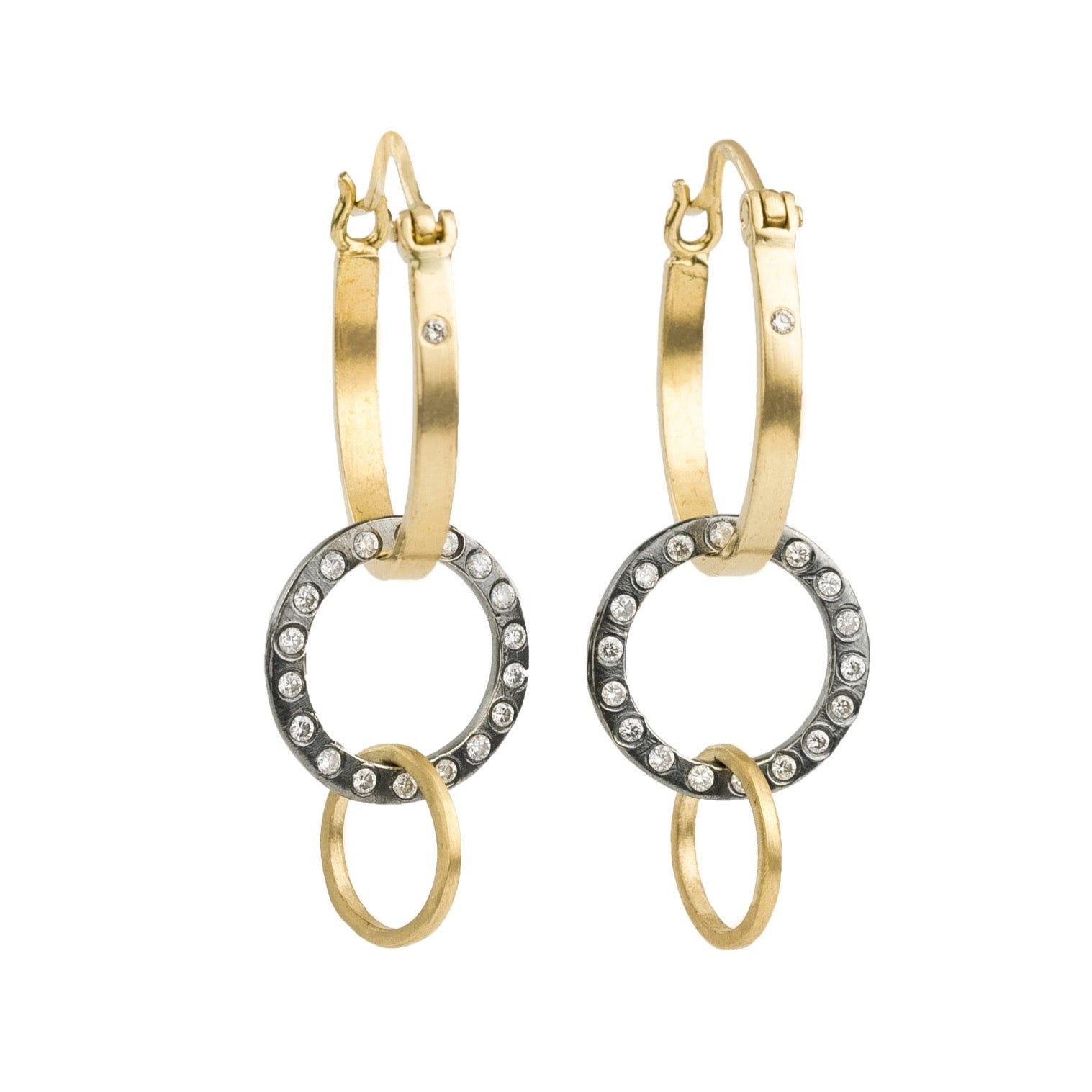 Traveler Huggie Hoops - 18ky Gold + Colored Diamonds