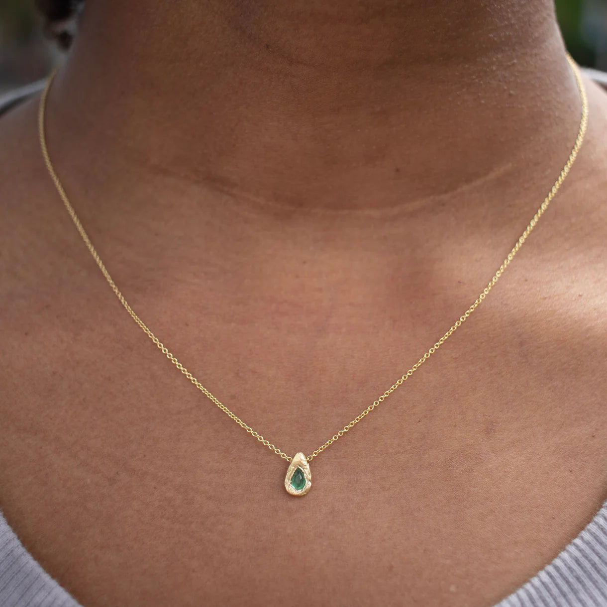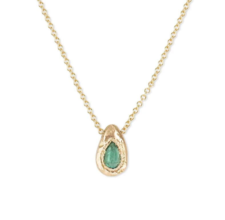 Teardrop Slider Necklace - 18k y Gold + Emerald