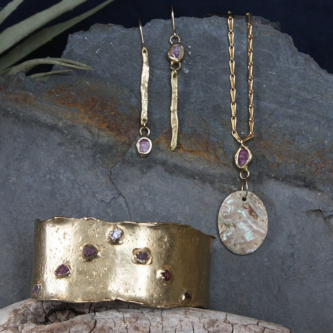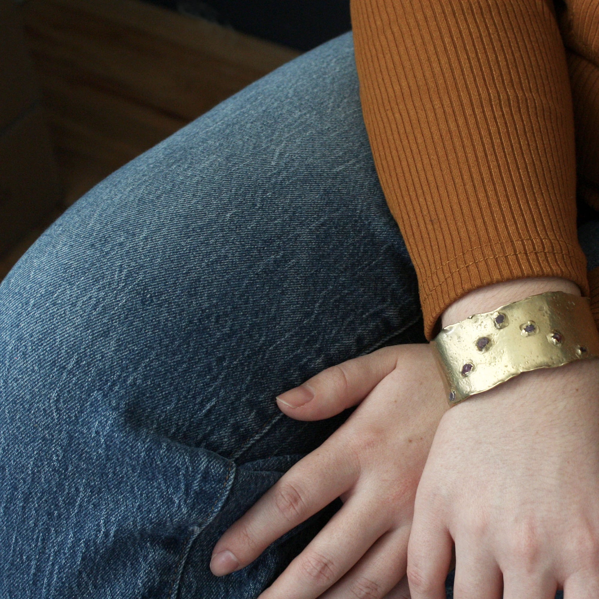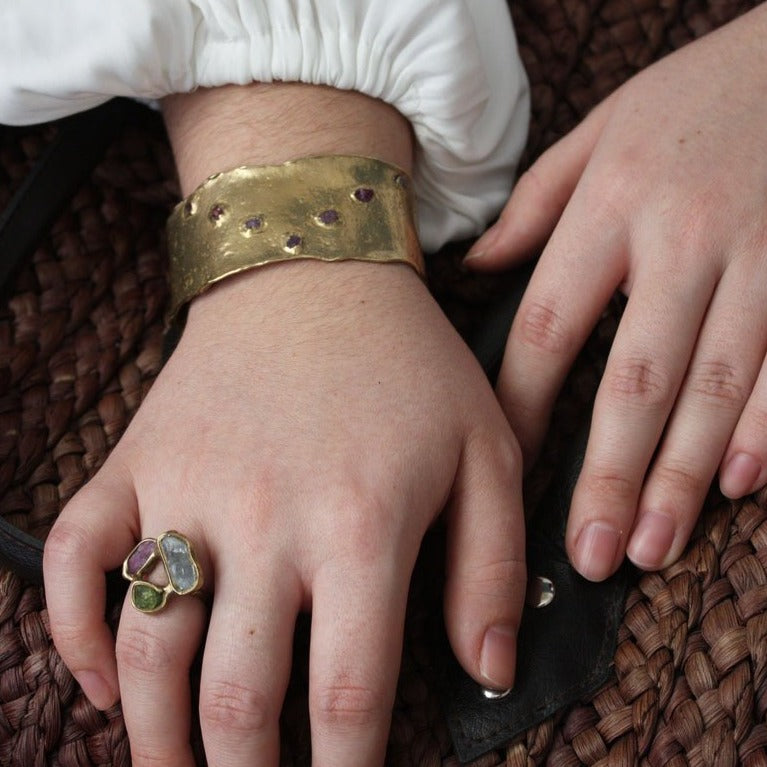 Eos Cuff - Ruby + Brass