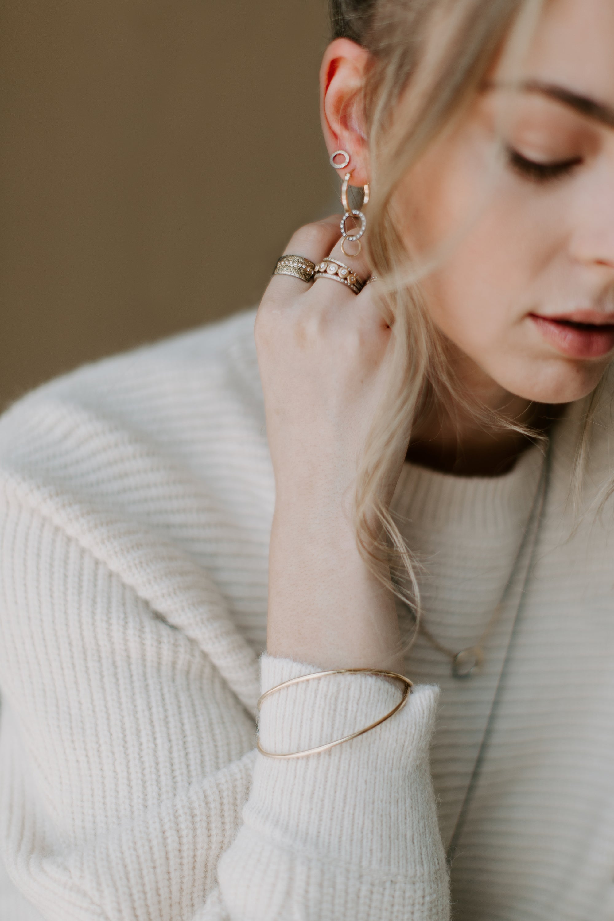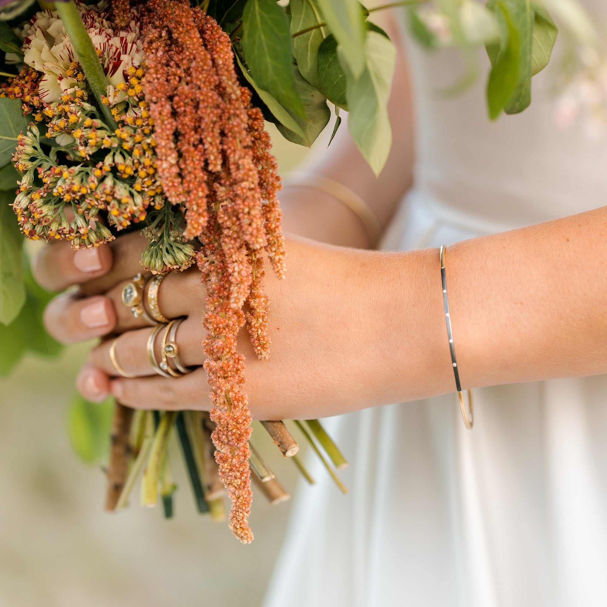 Golden In Bloom Stacking Skinny Cuff - 22ky, 18ky + VS Diamonds