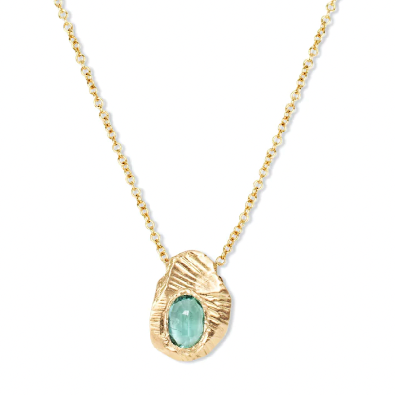 Oval Slider Necklace - 18k Gold + Emerald