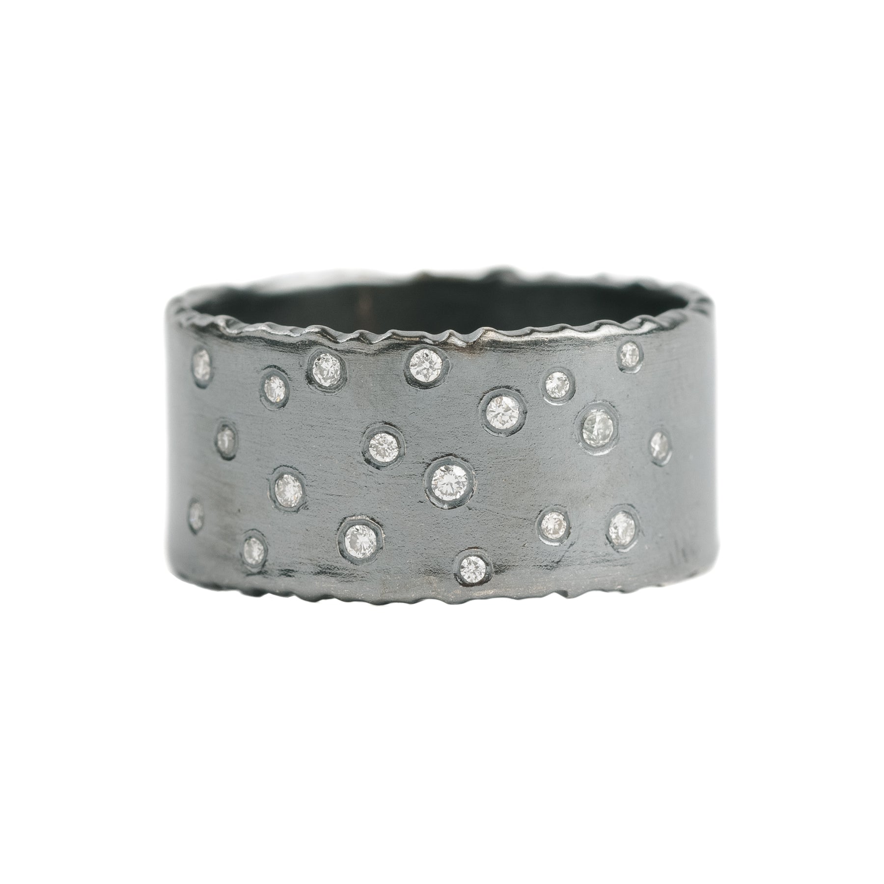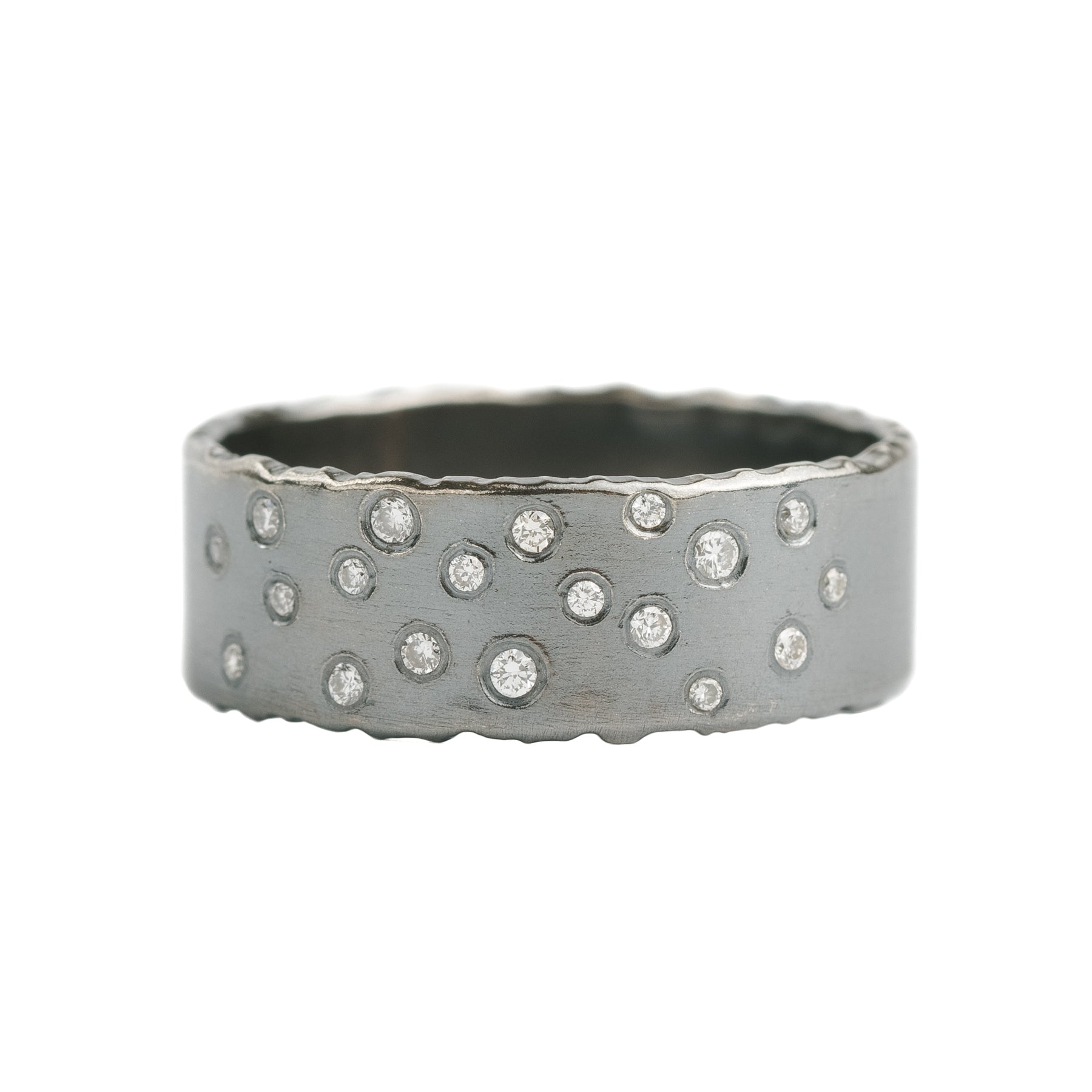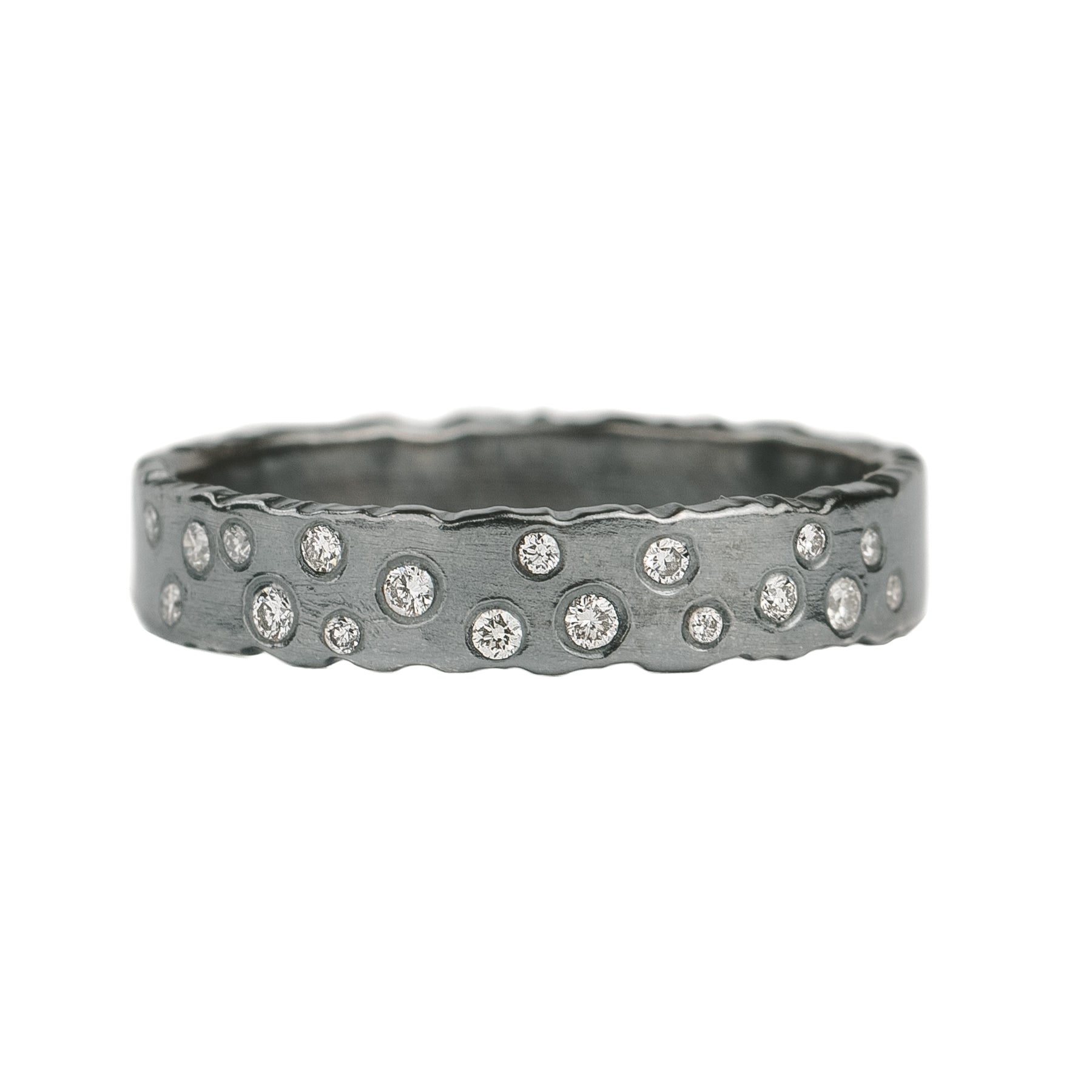 Oxidized Silver Scattered Diamond Band - 4mm, 7mm, 10mm