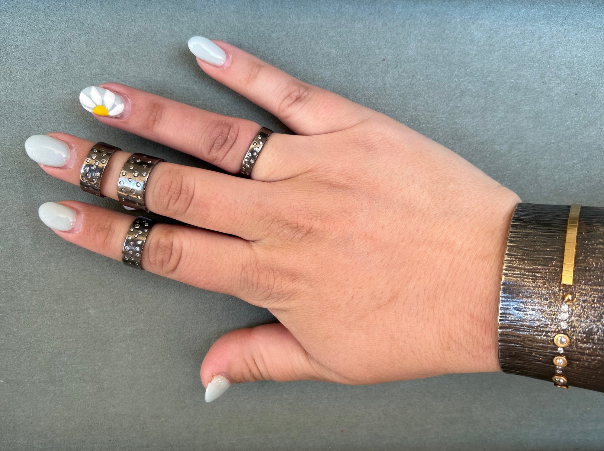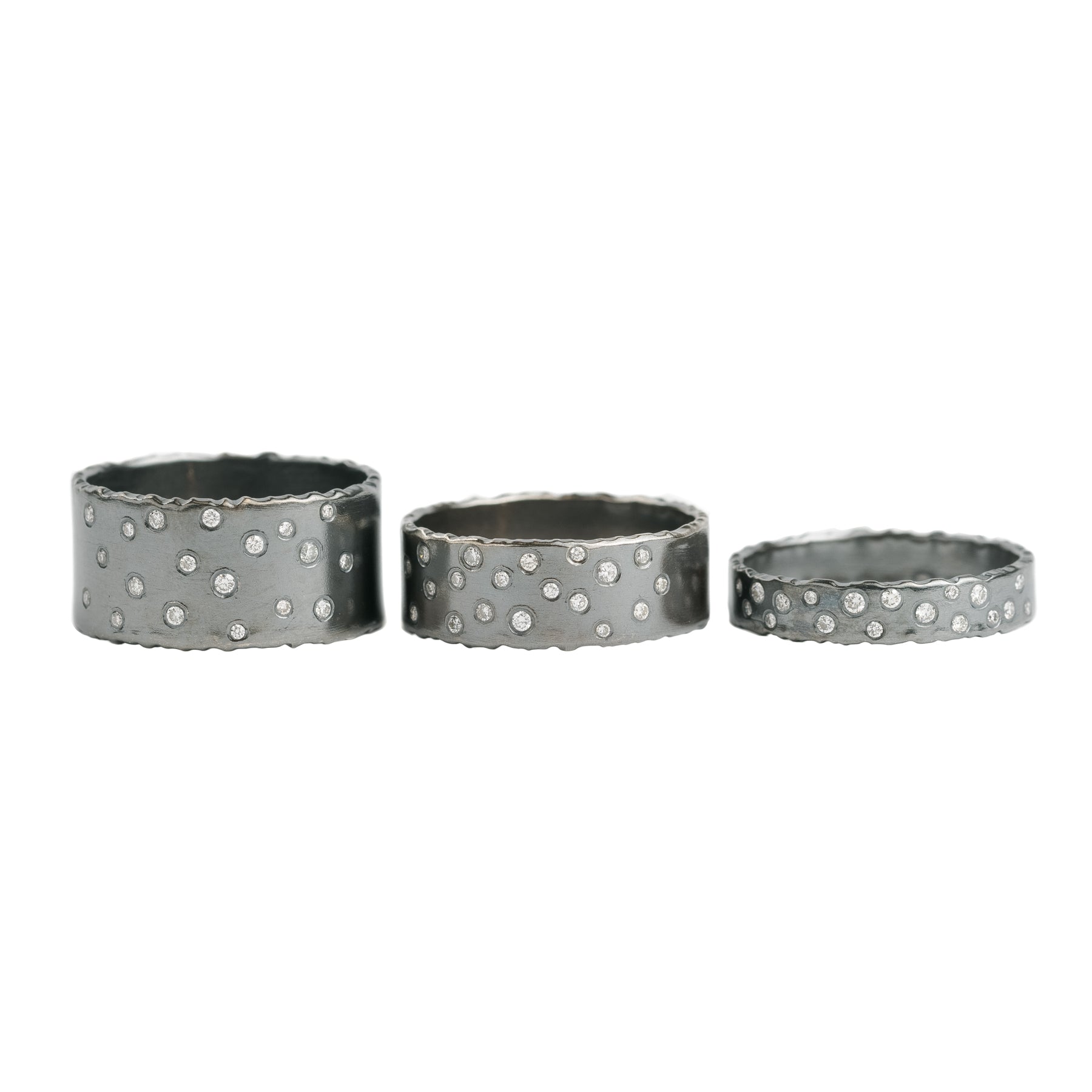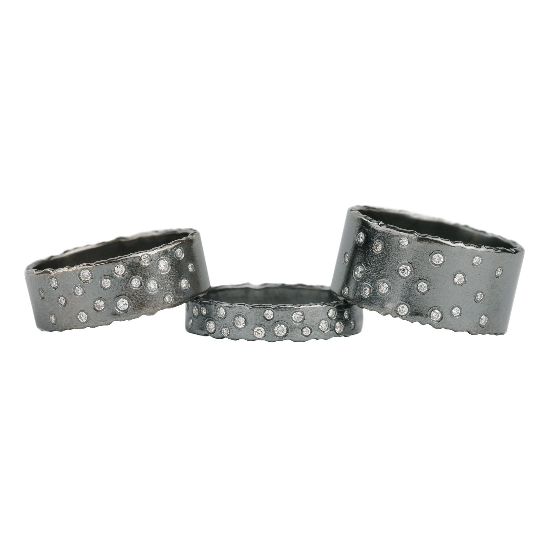 Oxidized Silver Scattered Diamond Band - 4mm, 7mm, 10mm