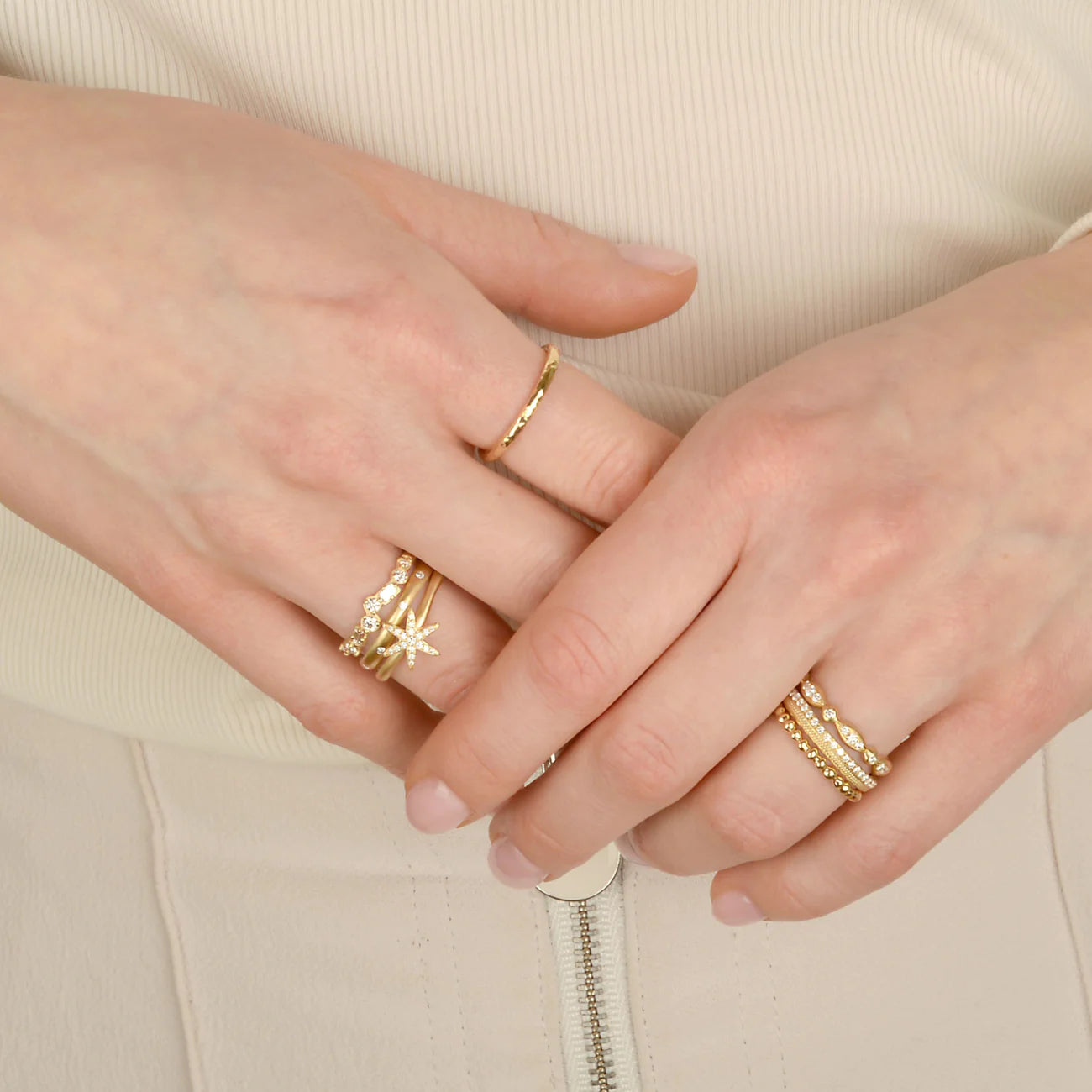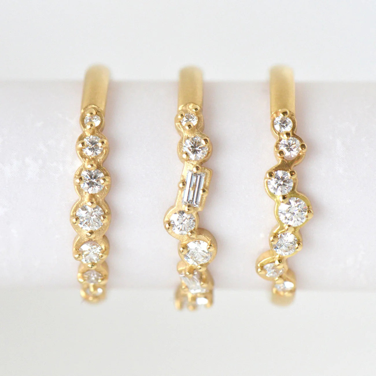 Cascade Baguette + Round Diamond Ring - 18ky + Diamonds