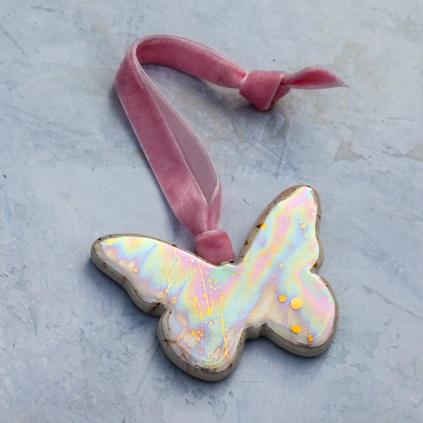 Handmade Ceramic Butterfly Ornament - Gold Iridescent