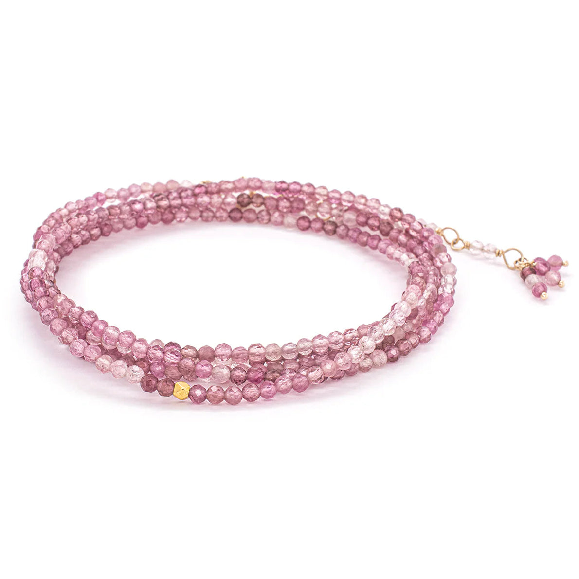 Pink Tourmaline Wrap Bracelet-Necklace - 14k Gold + Pink Tourmaline