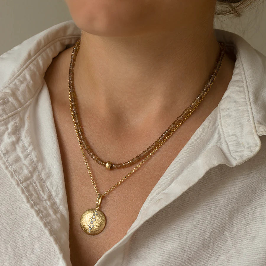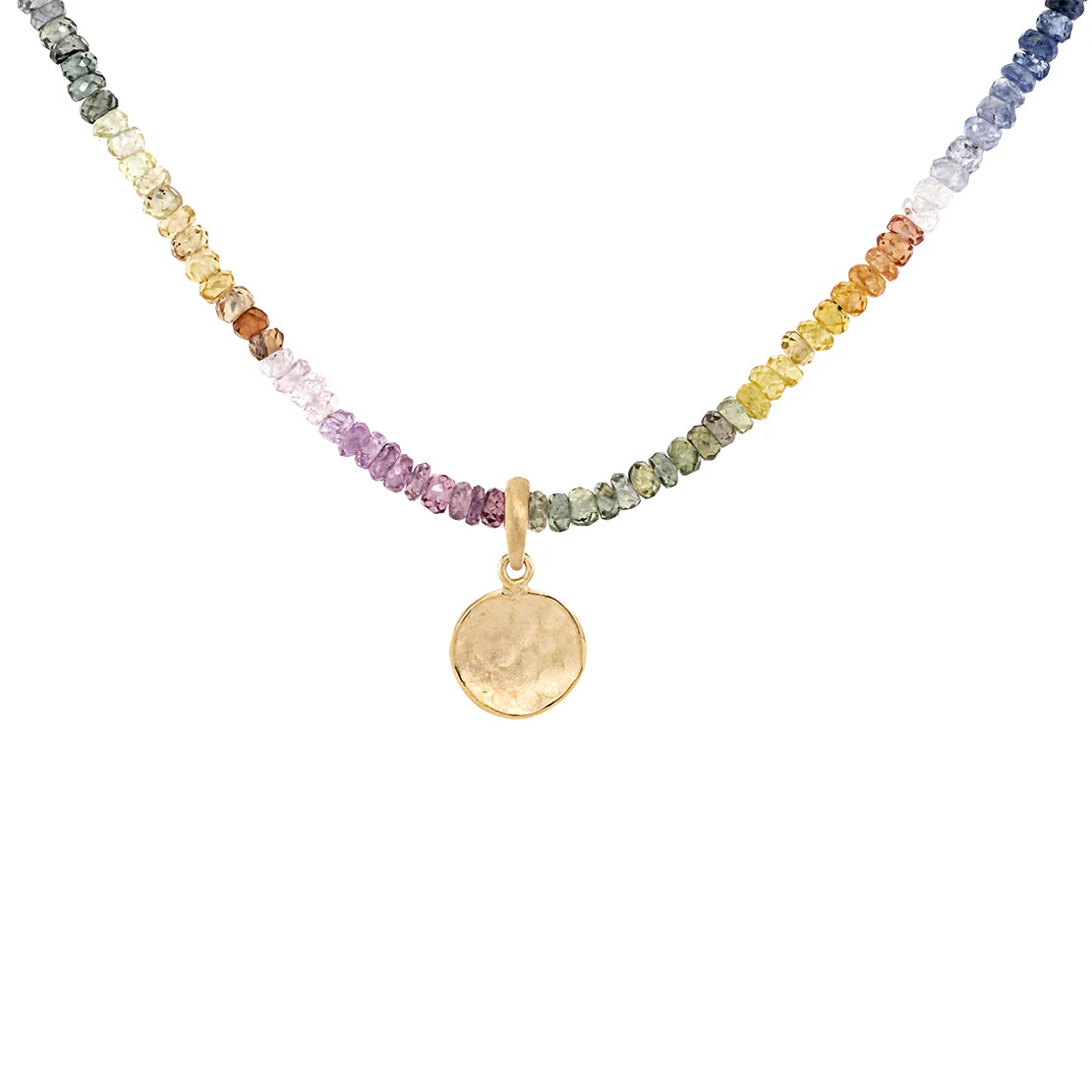 Natural Gemstone Hammered Disc Necklace - 18ky + Multi Sapphire