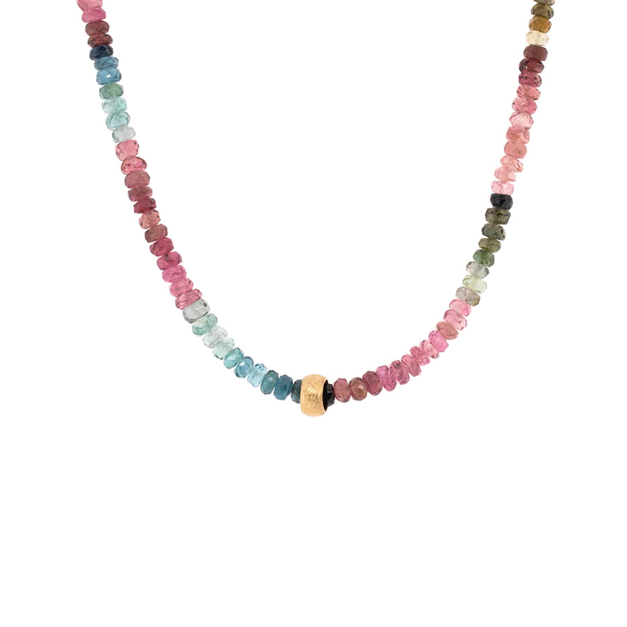 Natural Gemstone Boulder Bead Necklace - 18ky + Watermelon Tourmaline