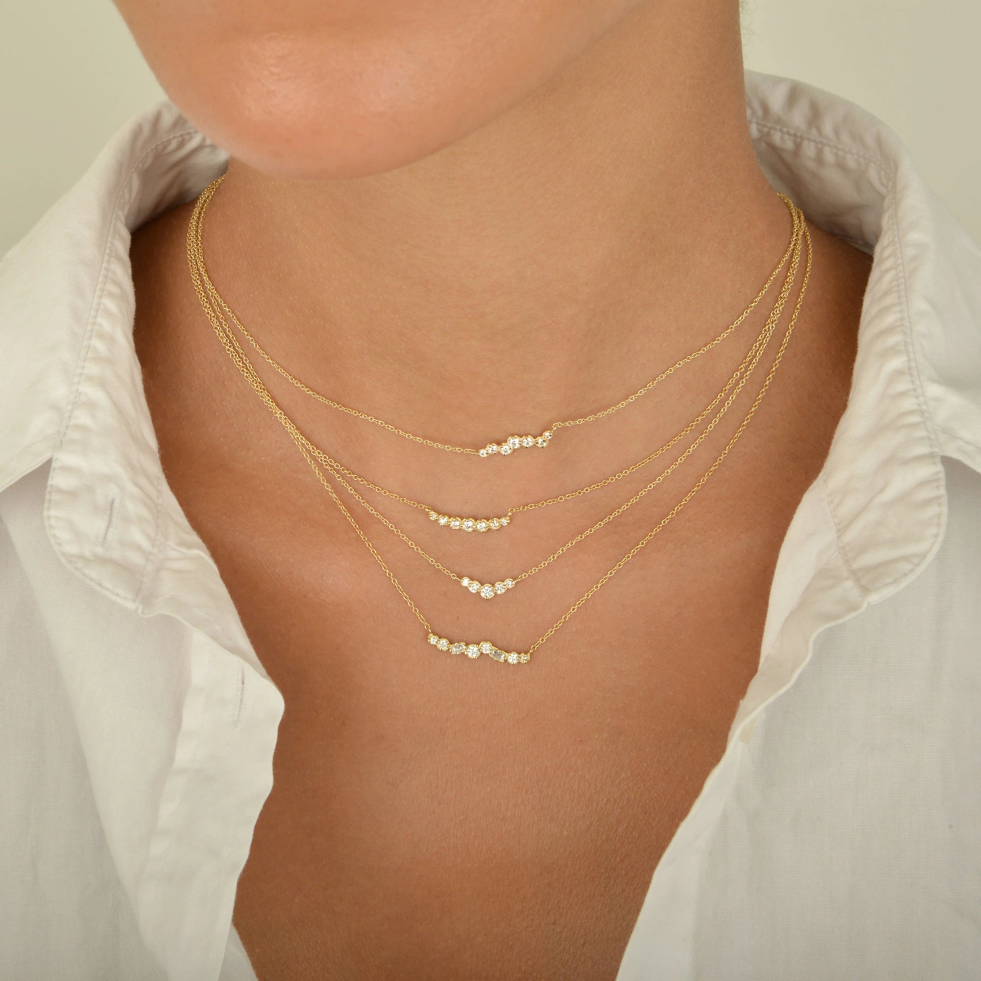 Cascade Diamond Bar Necklace - 18k Yellow Gold / 16"