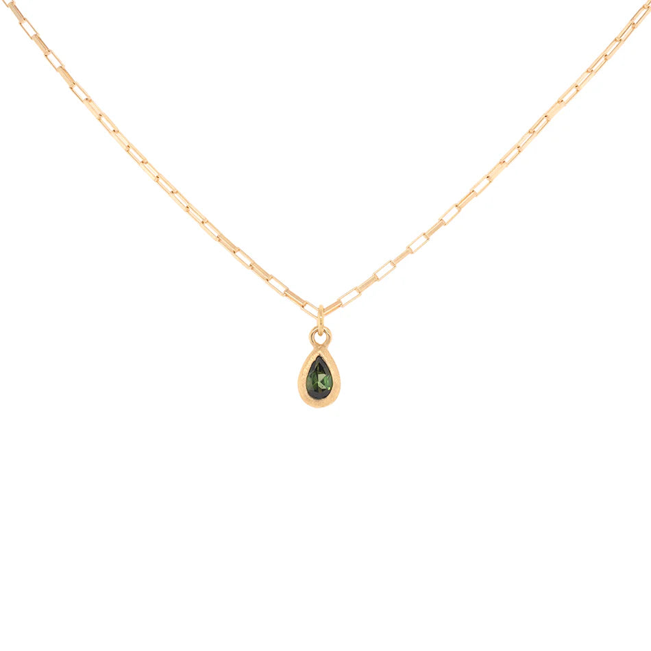 'Boulder' Pear Gemstone Pendant on Elongated Box Chain - Green Tourmaline / 14k & 18k Yellow Gold