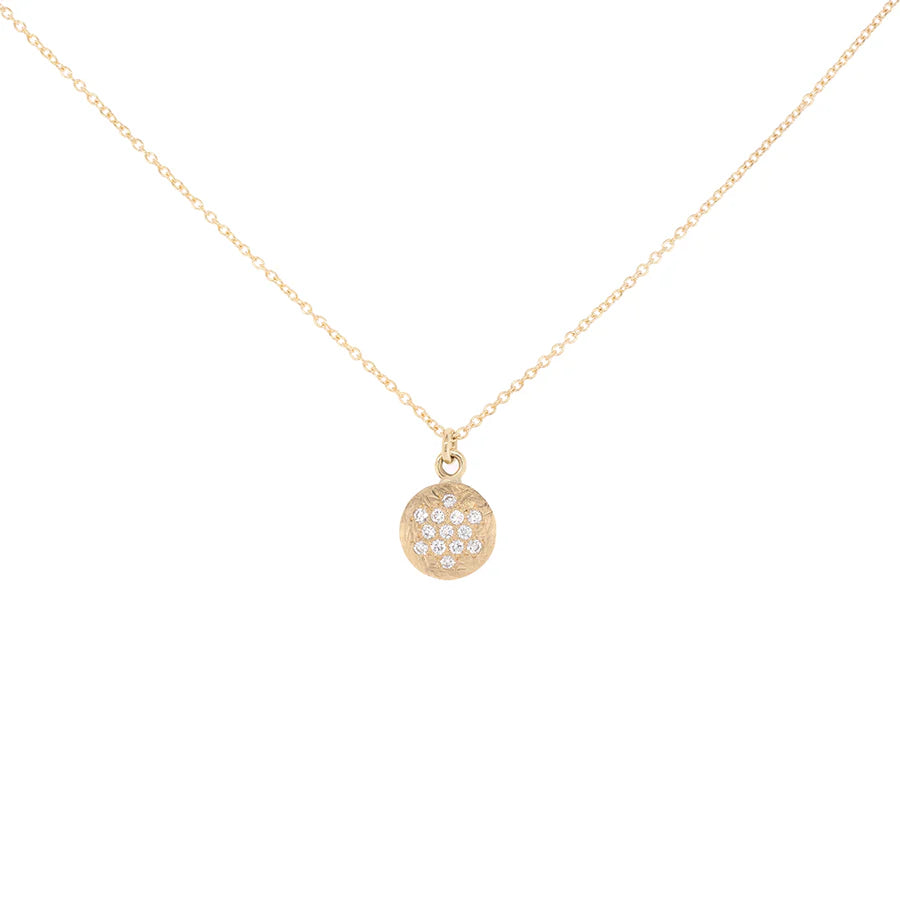 8mm 'Boulder' Pave Diamond Disc Necklace - 18k Yellow Gold