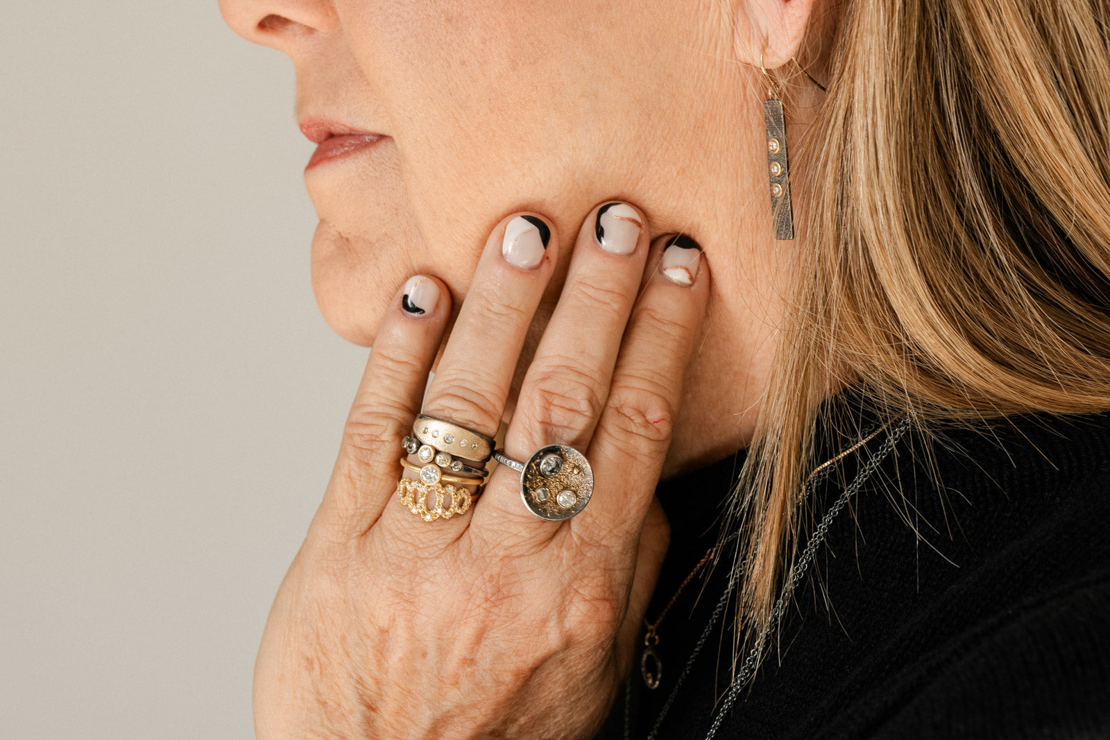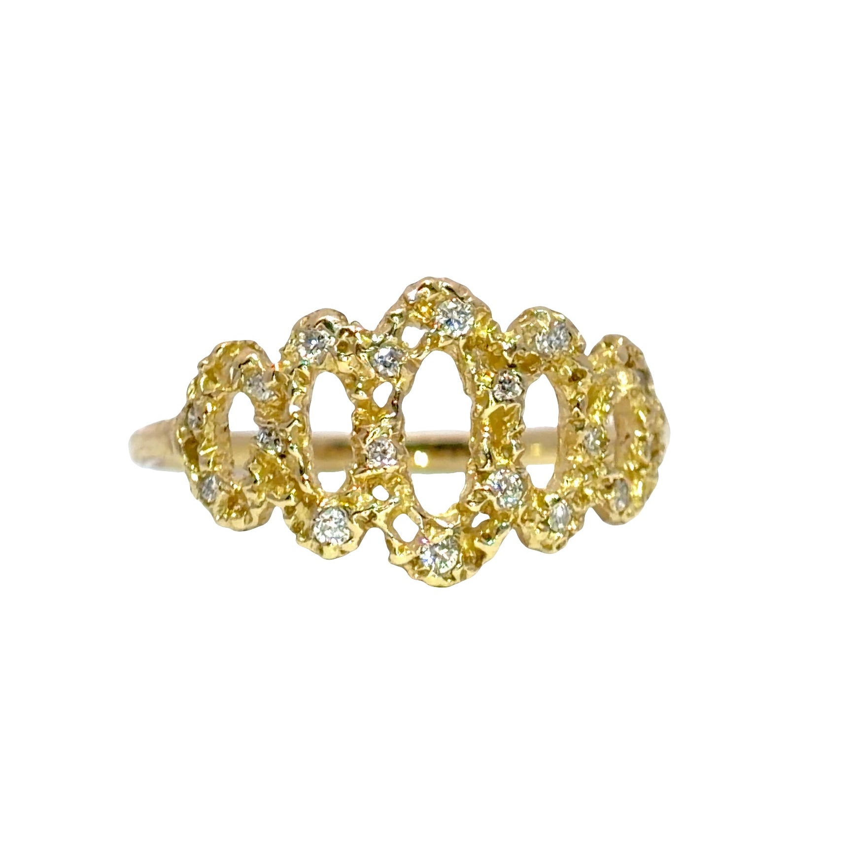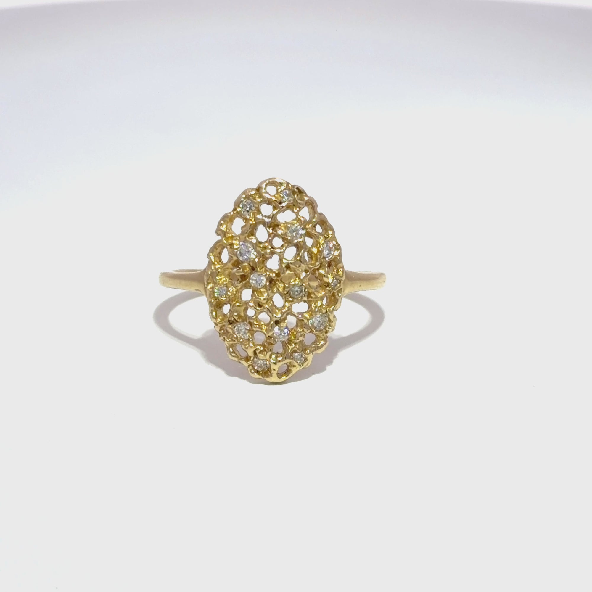 Honeycomb Lace Oval Ring - 14k Gold + Diamonds