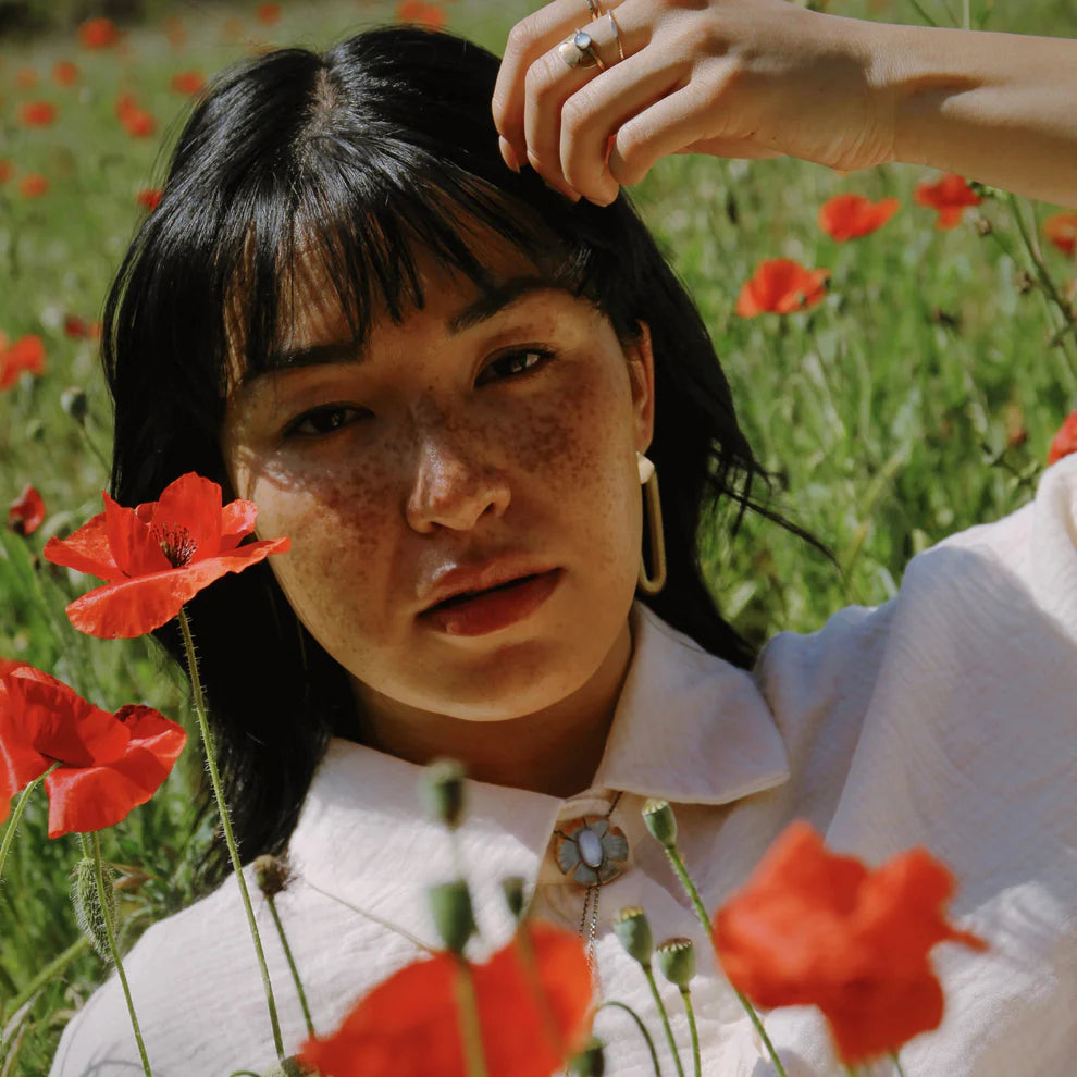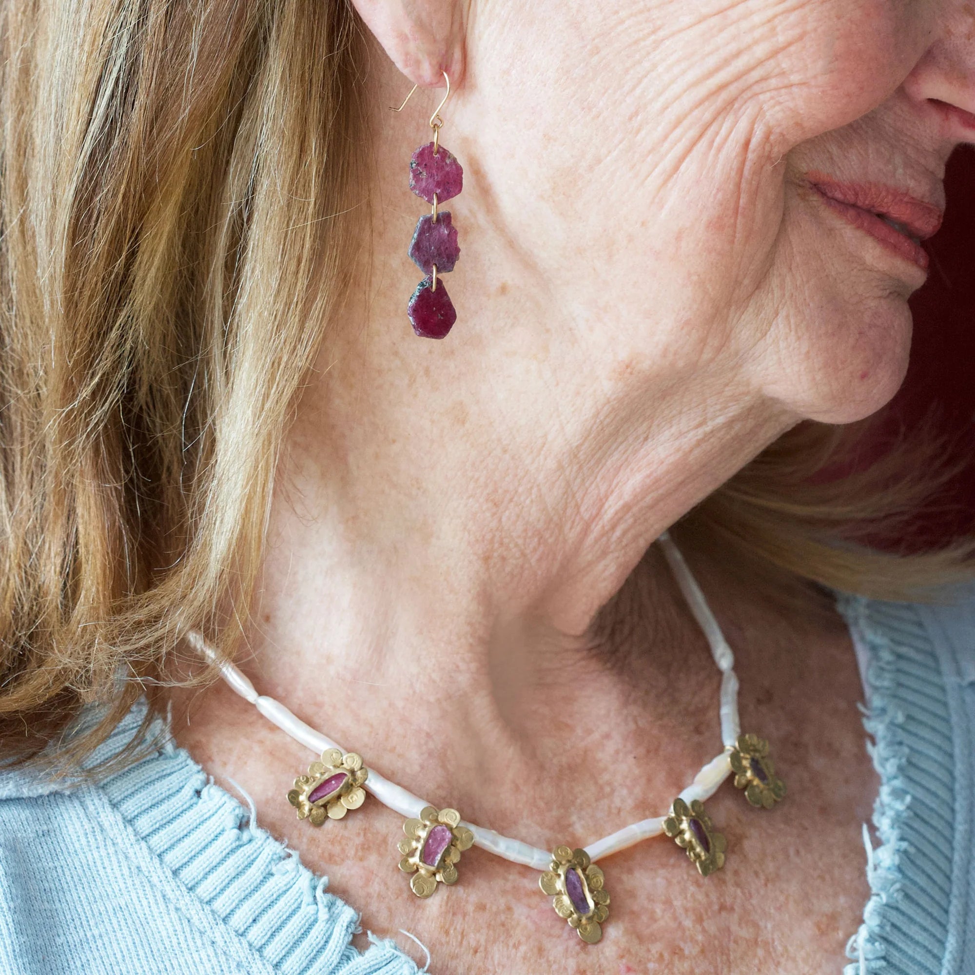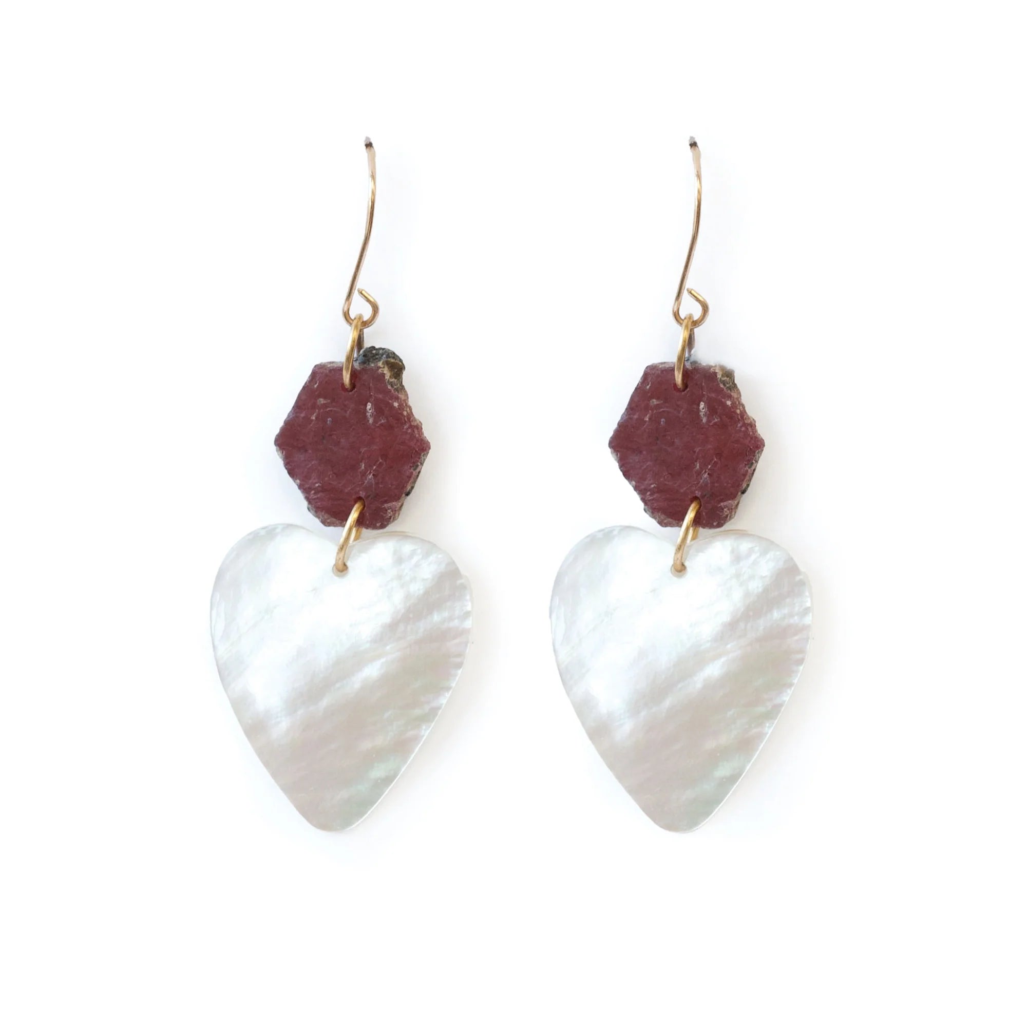 Aroma Earrings - 14k Gold-Fill, Ruby + Mother of Pearl