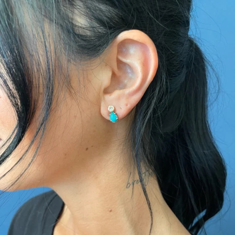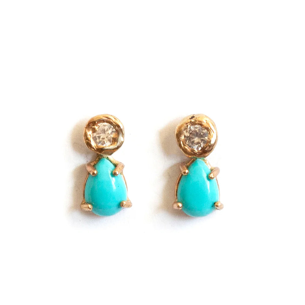 Dearest Earrings - 14k Gold, Turquoise + White Sapphire